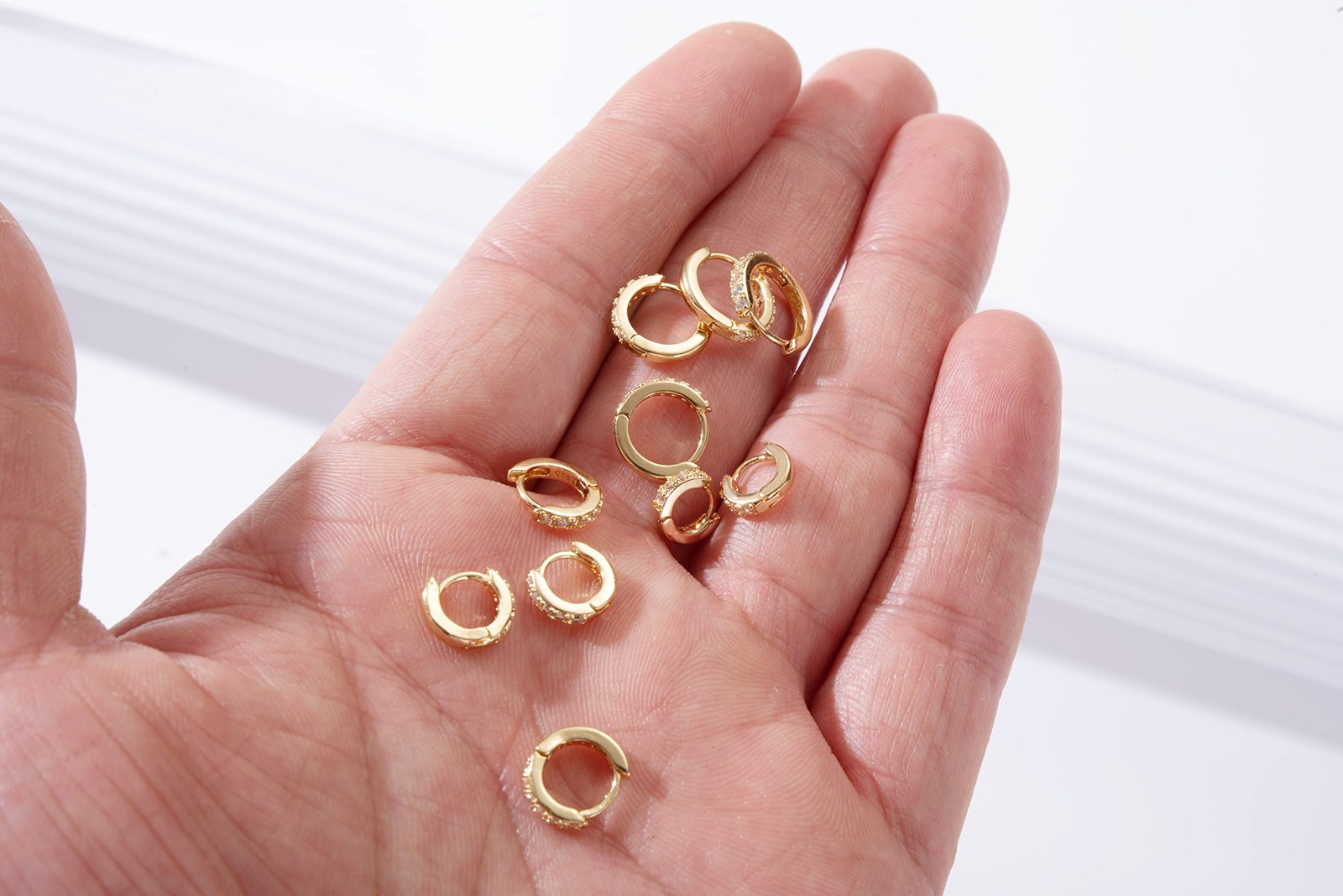 Dainty Tiny 14K Gold Huggie Hoop Earrings 5 Pairs Mini Cubic Zirconia Hoops E