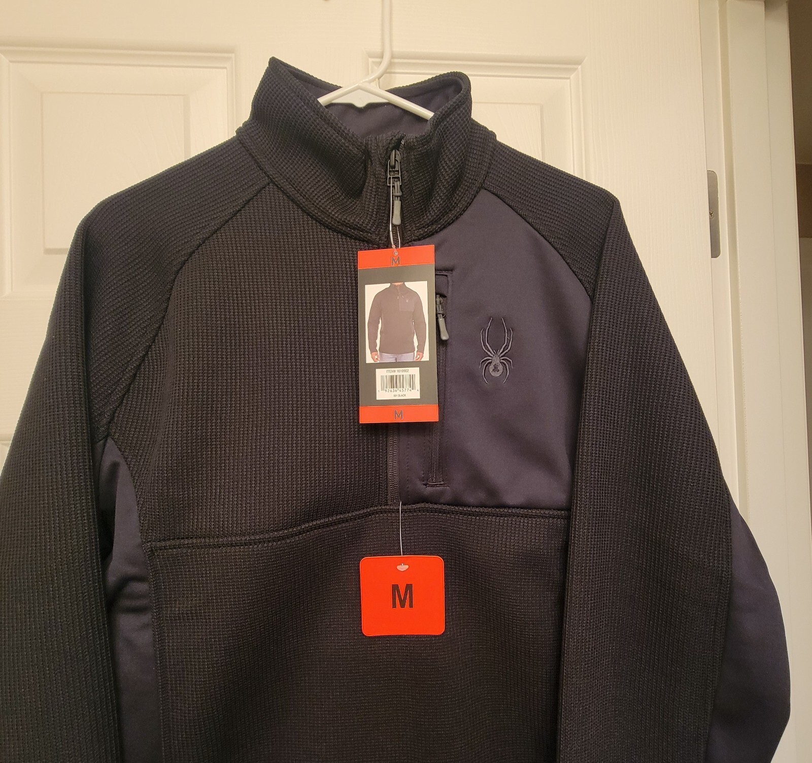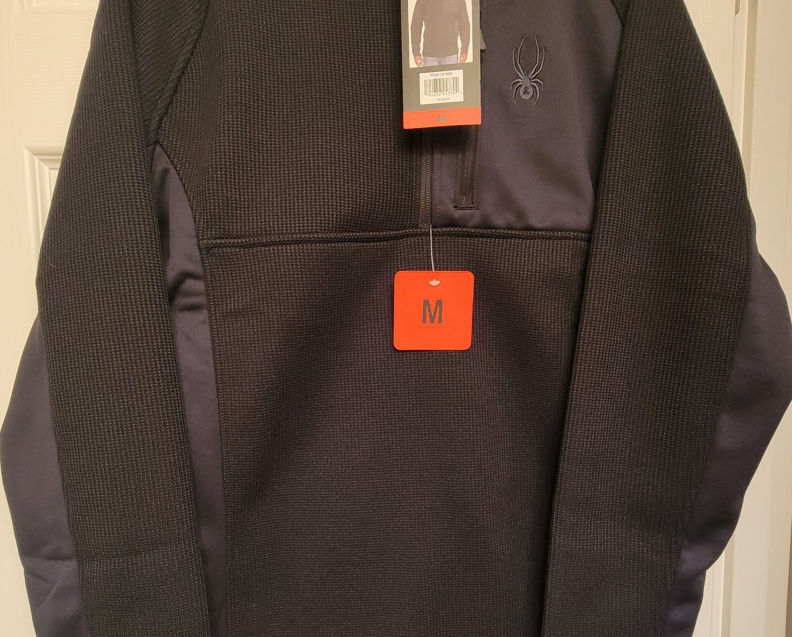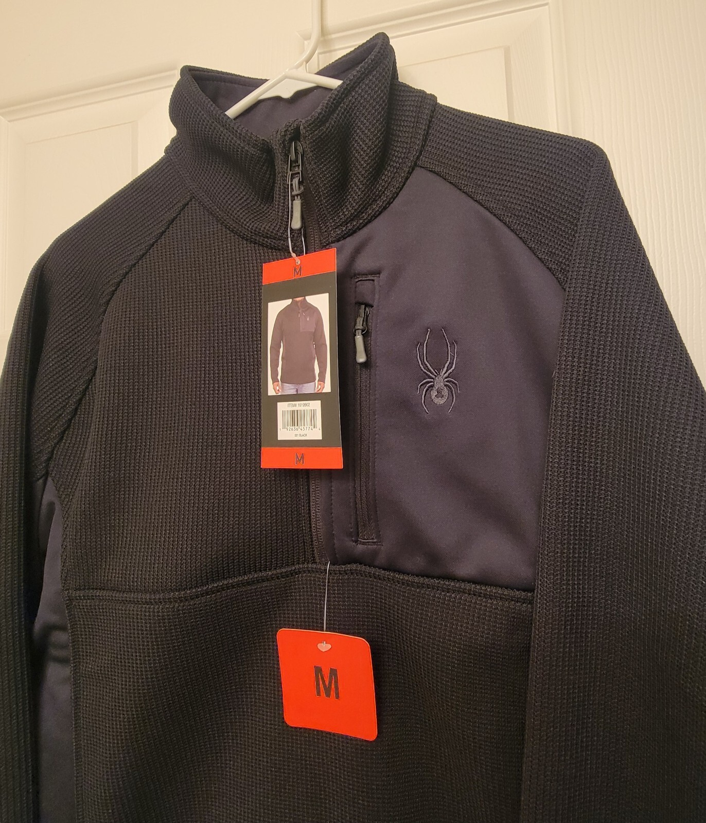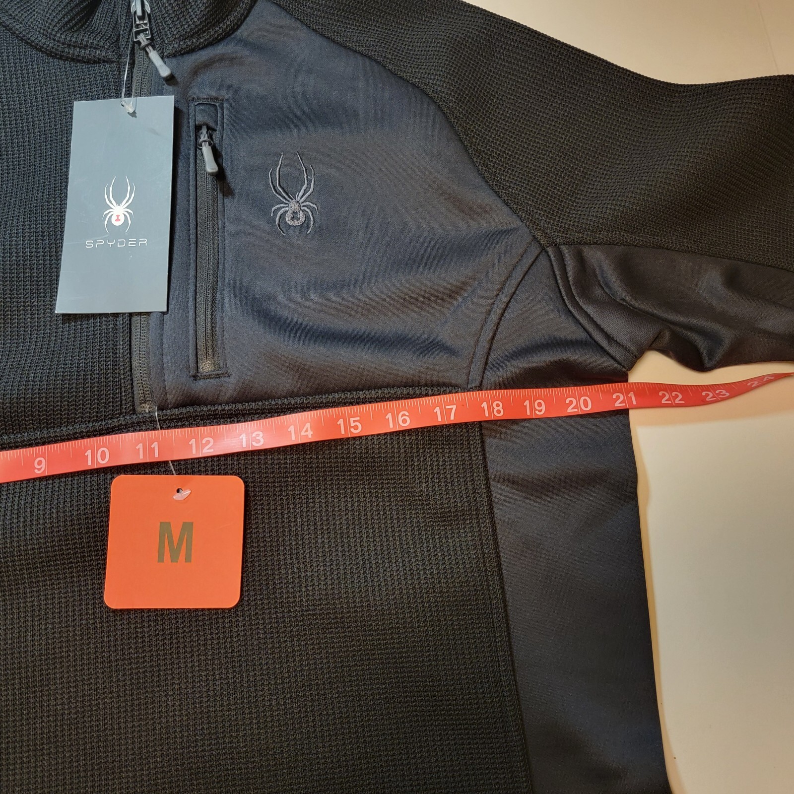 Spyder Mens Sweater Black Thermal Waffle Knit Pullover 1/4 Zip Size Medium NEW