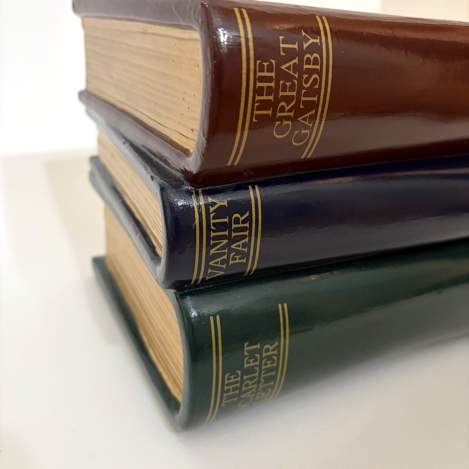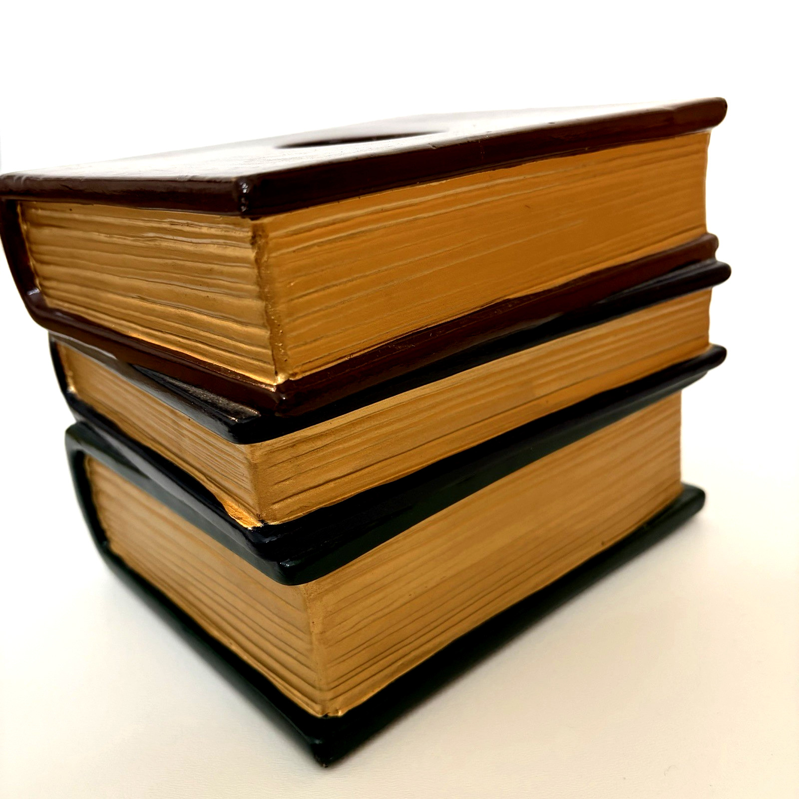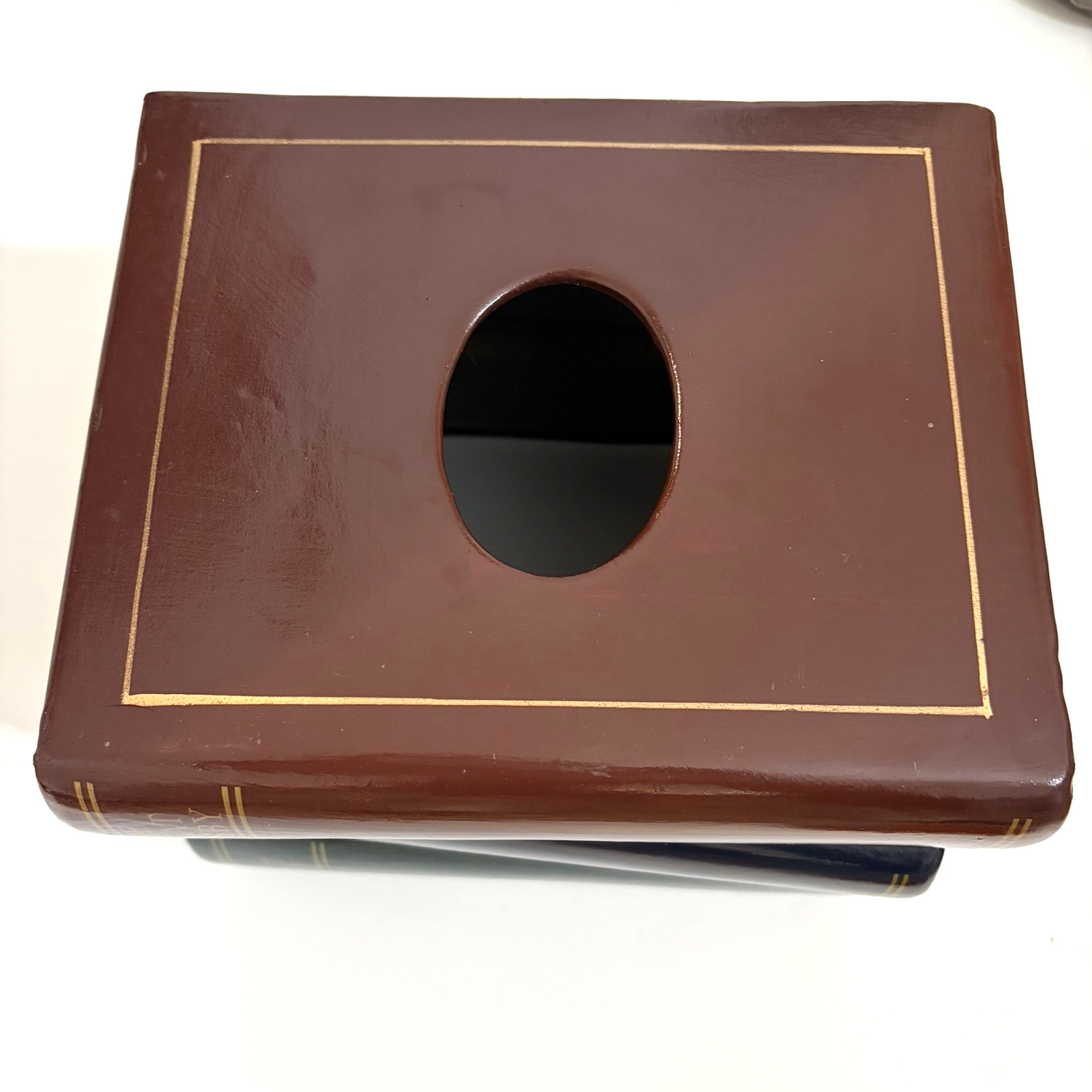 Vtg 1995 Faux Stack of Books Square Tissue Box Cover Bandwagon Metal