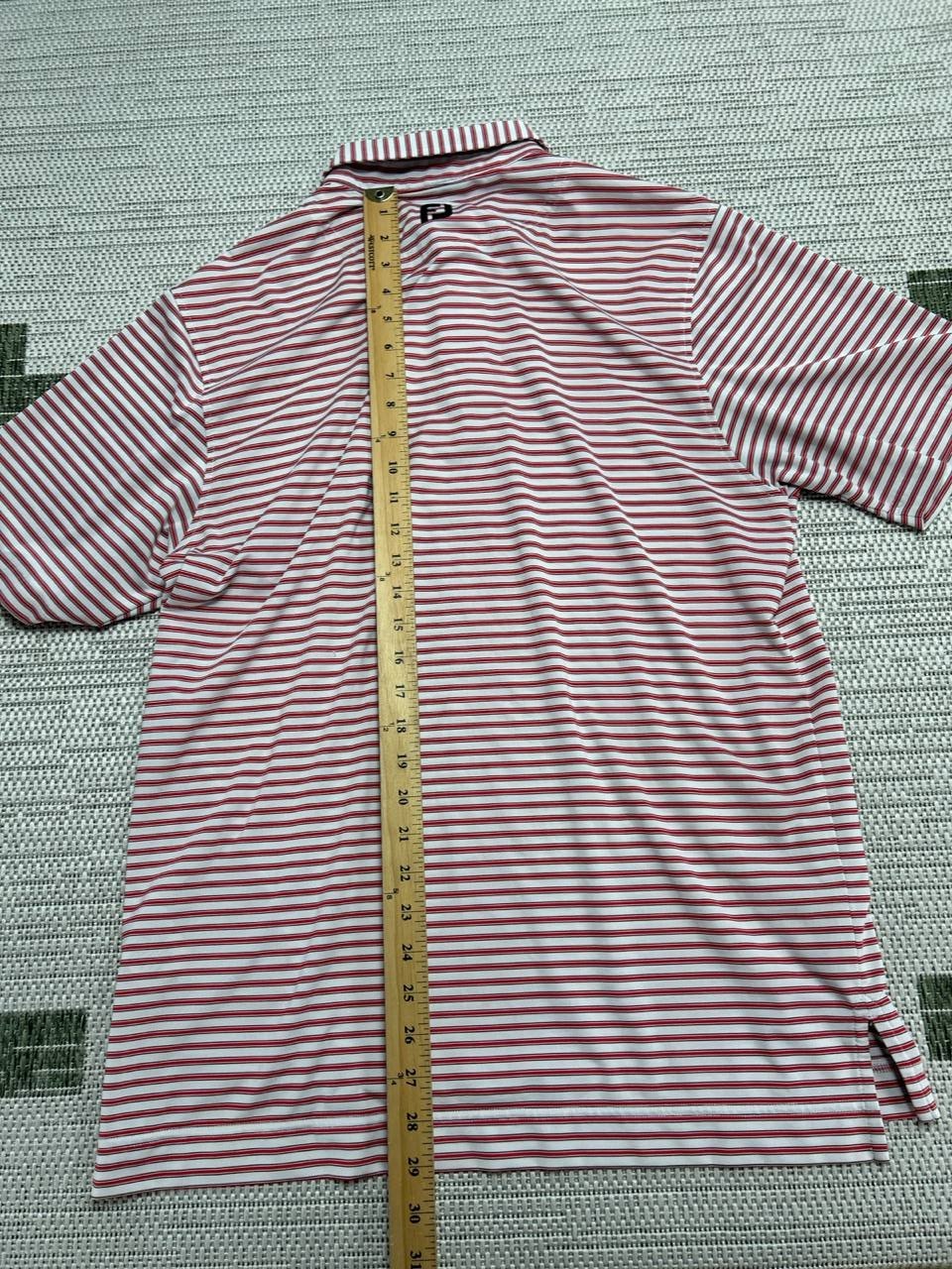 как выглядит Footjoy Performance Polo Shirt Mens Medium Red Striped Stretch Golf Athleisure фото