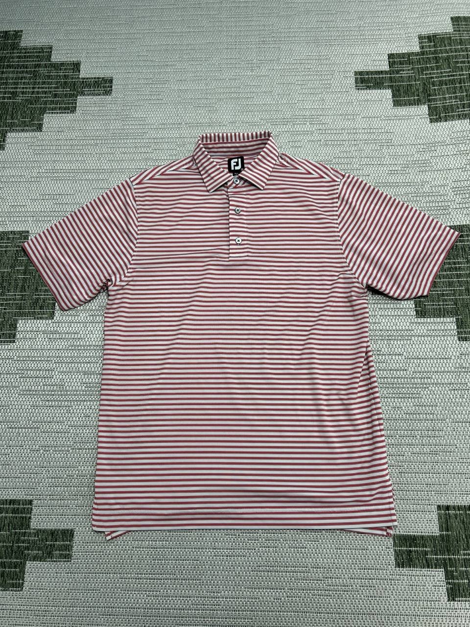 Footjoy Performance Polo Shirt Mens Medium Red Striped Stretch Golf Athleisure
