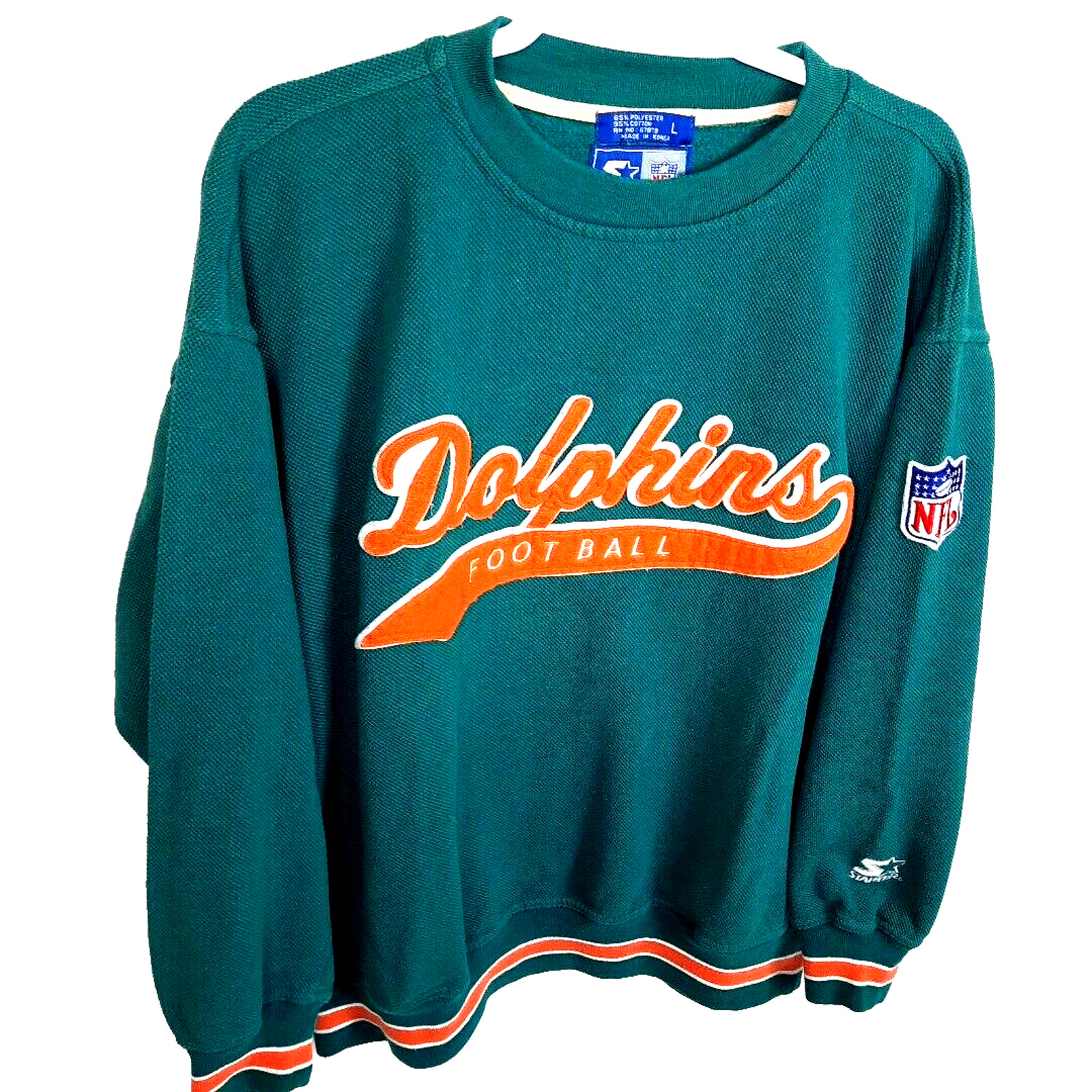 Vintage Miami Dolphins Starter NFL Stitched Logo Mens Sweatshirt Large Green