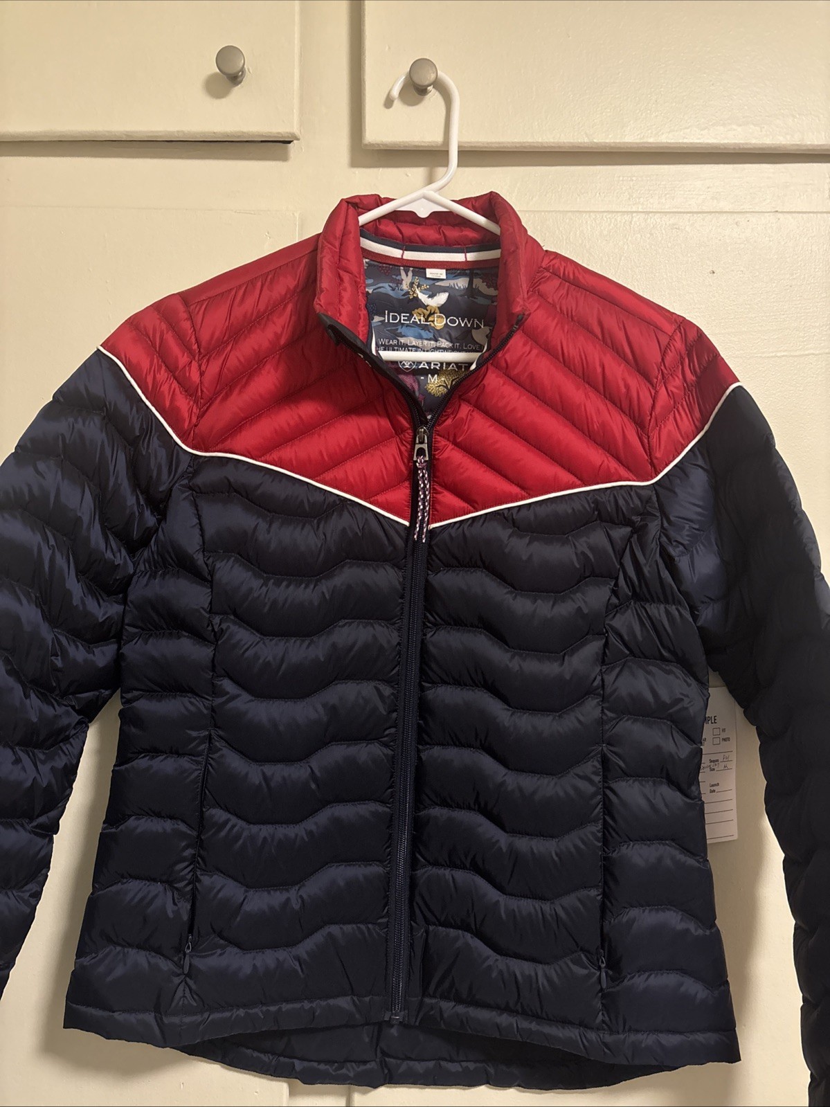 как выглядит NWOT Ariat Tek Womens Red Navy Quilted Duck Down Insulated Jacket Puffer Size M фото