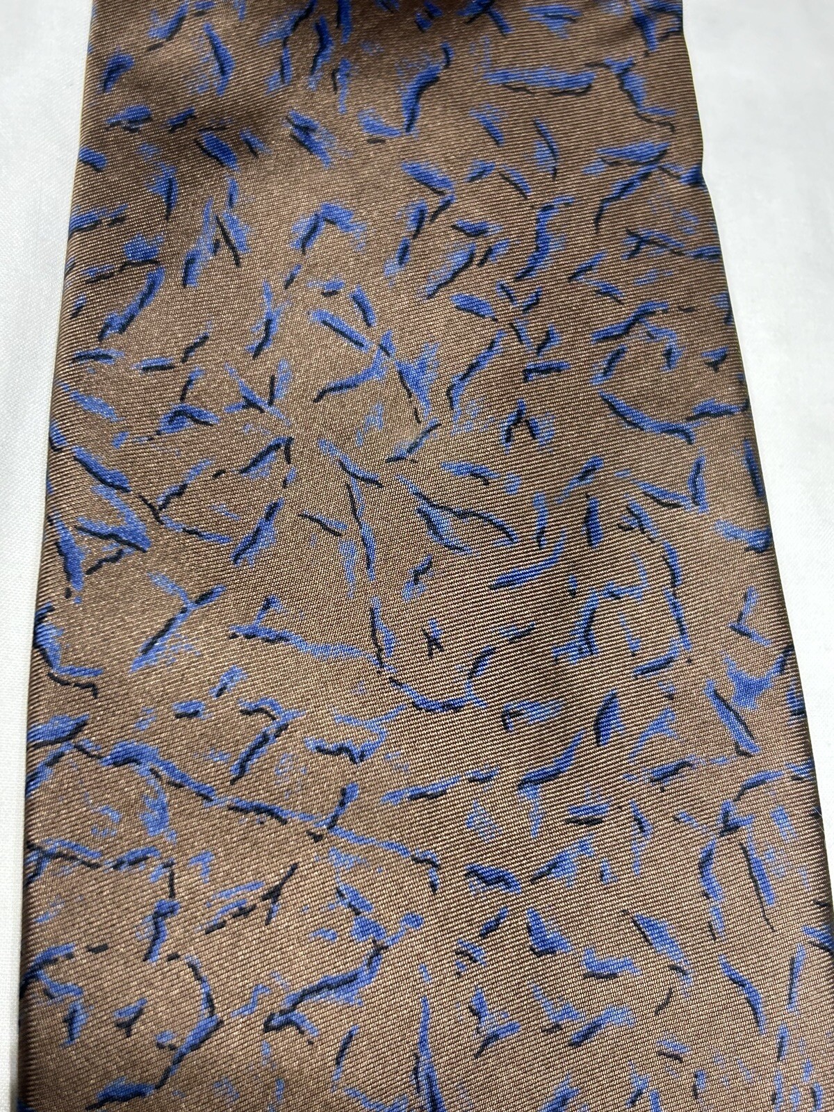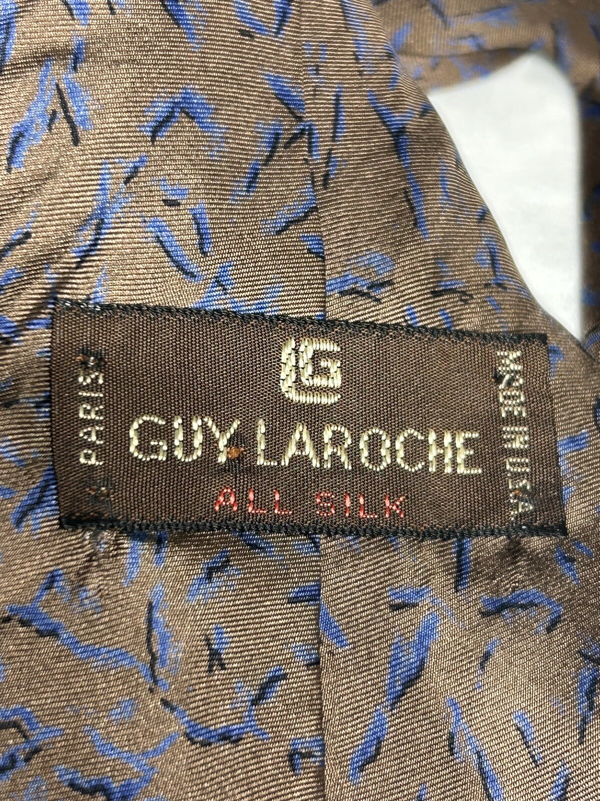 Vintage Guy Laroche French Silk Tie Necktie Brown Blue Black Abstract USA