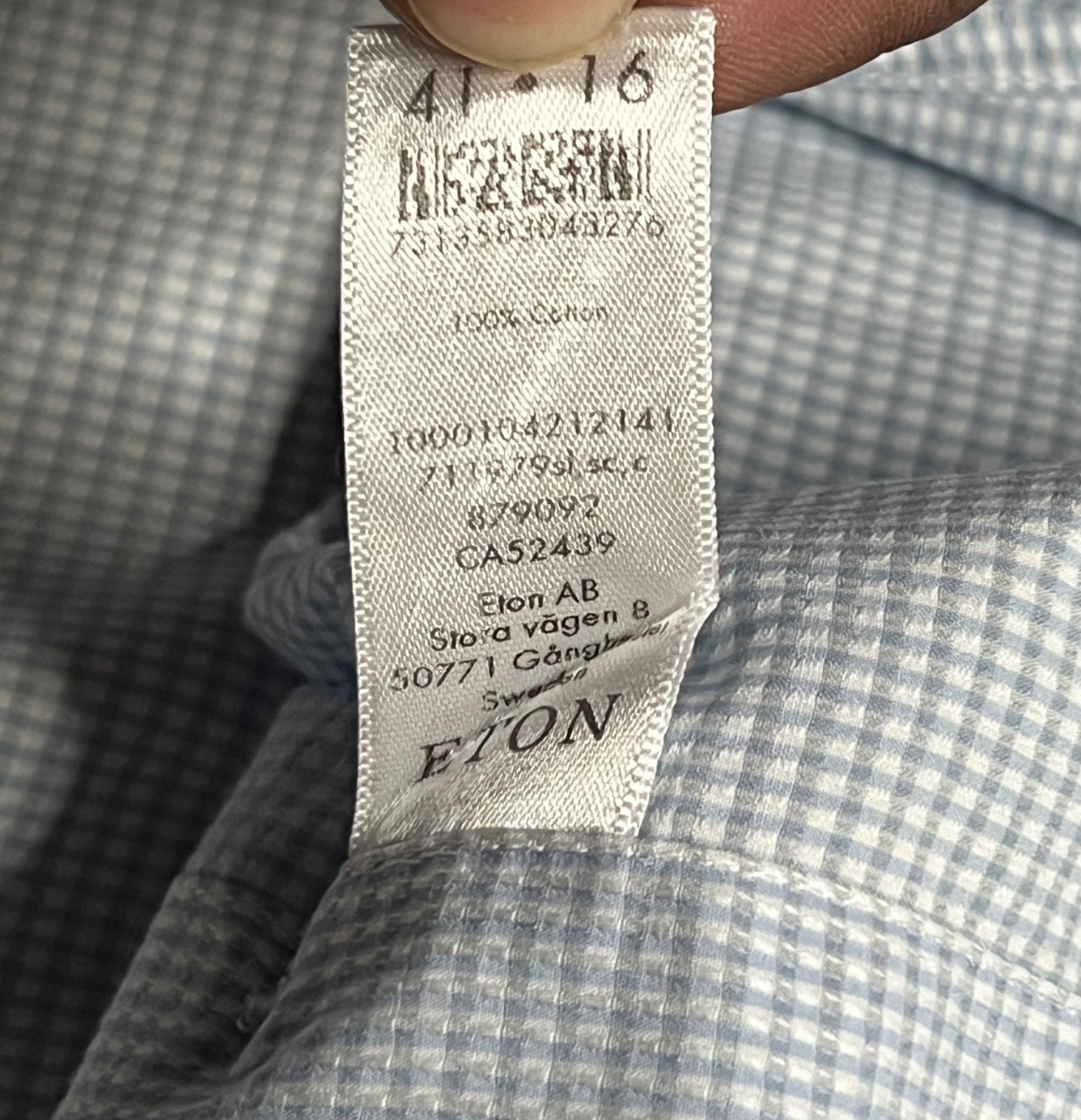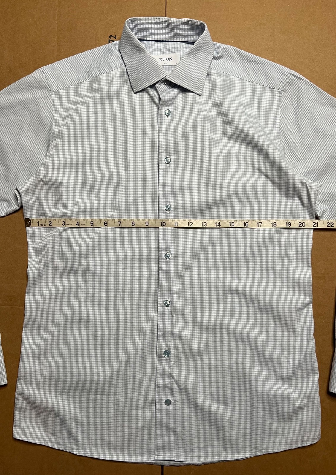 Eton Dress Shirt Men s 16 41 Blue Micro Check Slim Fit Long Sleeve Cotton Poplin