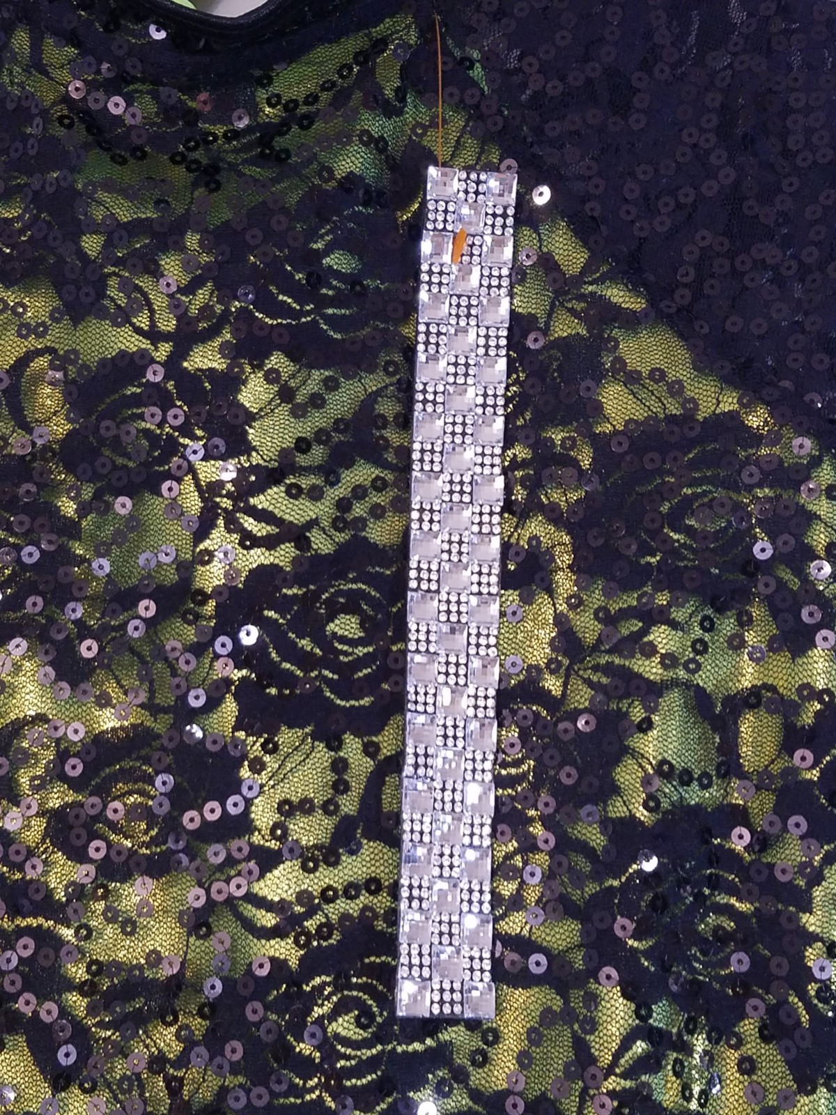 как выглядит Weissman Jazz Dance Costume Sz LC Black Lace Sequin Green Bow Headband NWOT 3938 фото