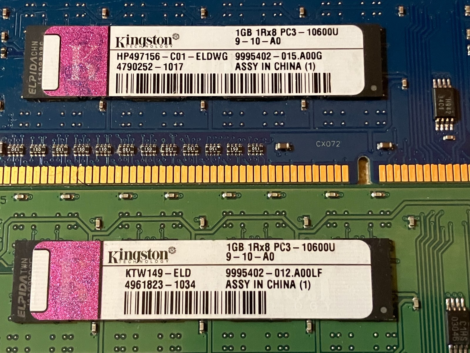 Gently Used Kingston 2GB PC3-10600U 9-10-A0 DDR3 Desktop Ram Kit