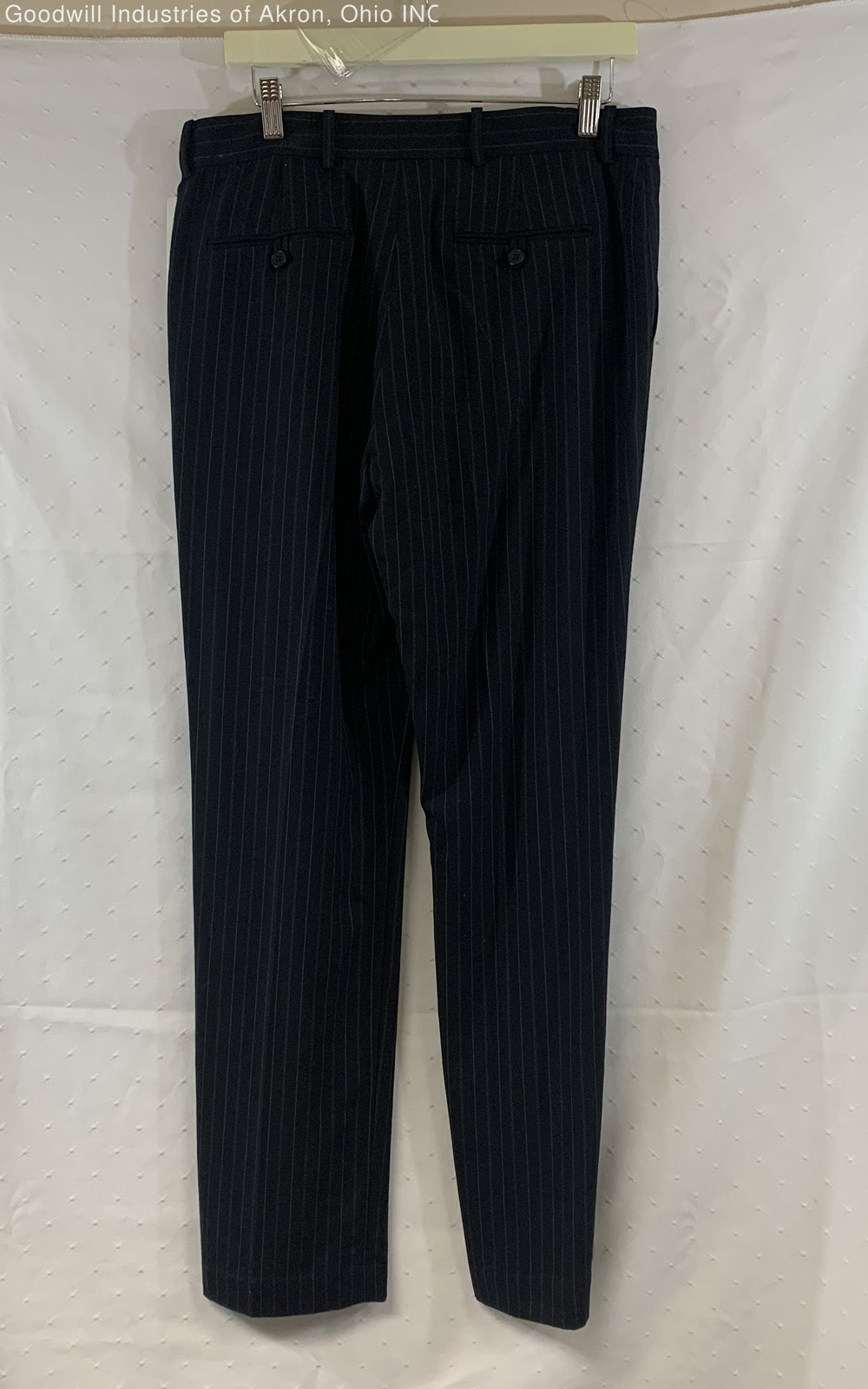 как выглядит Higgins Womens Black Pinstripe Straight Leg Trousers Vintage 90s NWT Size 8 фото
