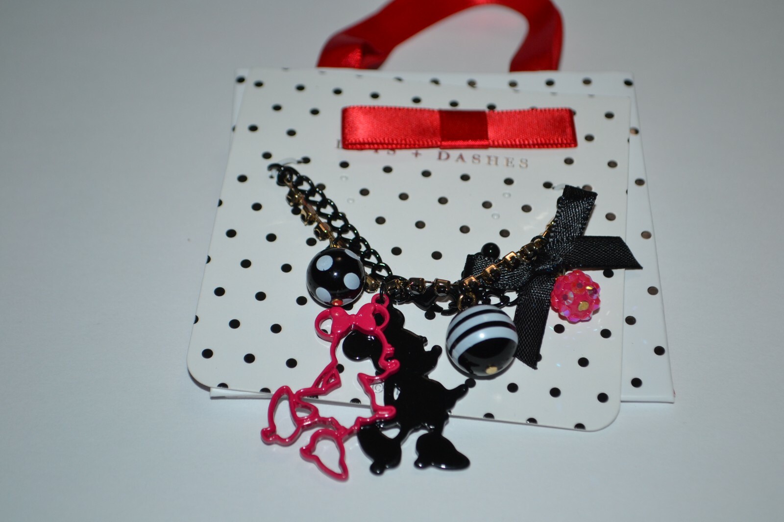 • Disney Parks Minnie Mouse Bow Gold Black-Tone Bracelet Dots Dashes