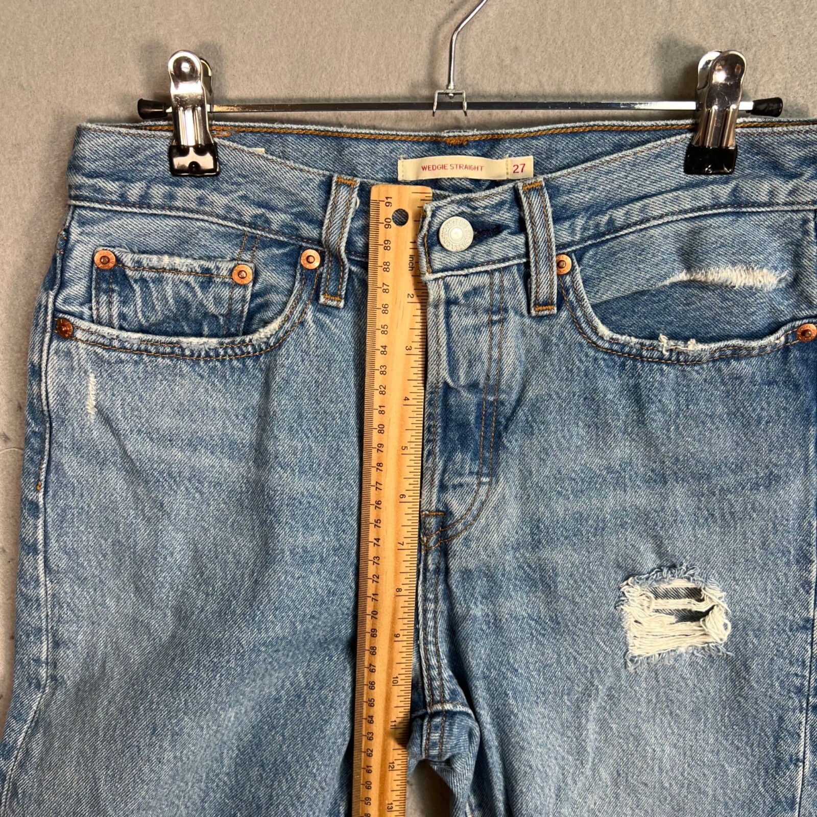 как выглядит Levis Wedgie Straight Womens Distressed High-Rise Jeans 27 x 26 Light Wash Denim фото