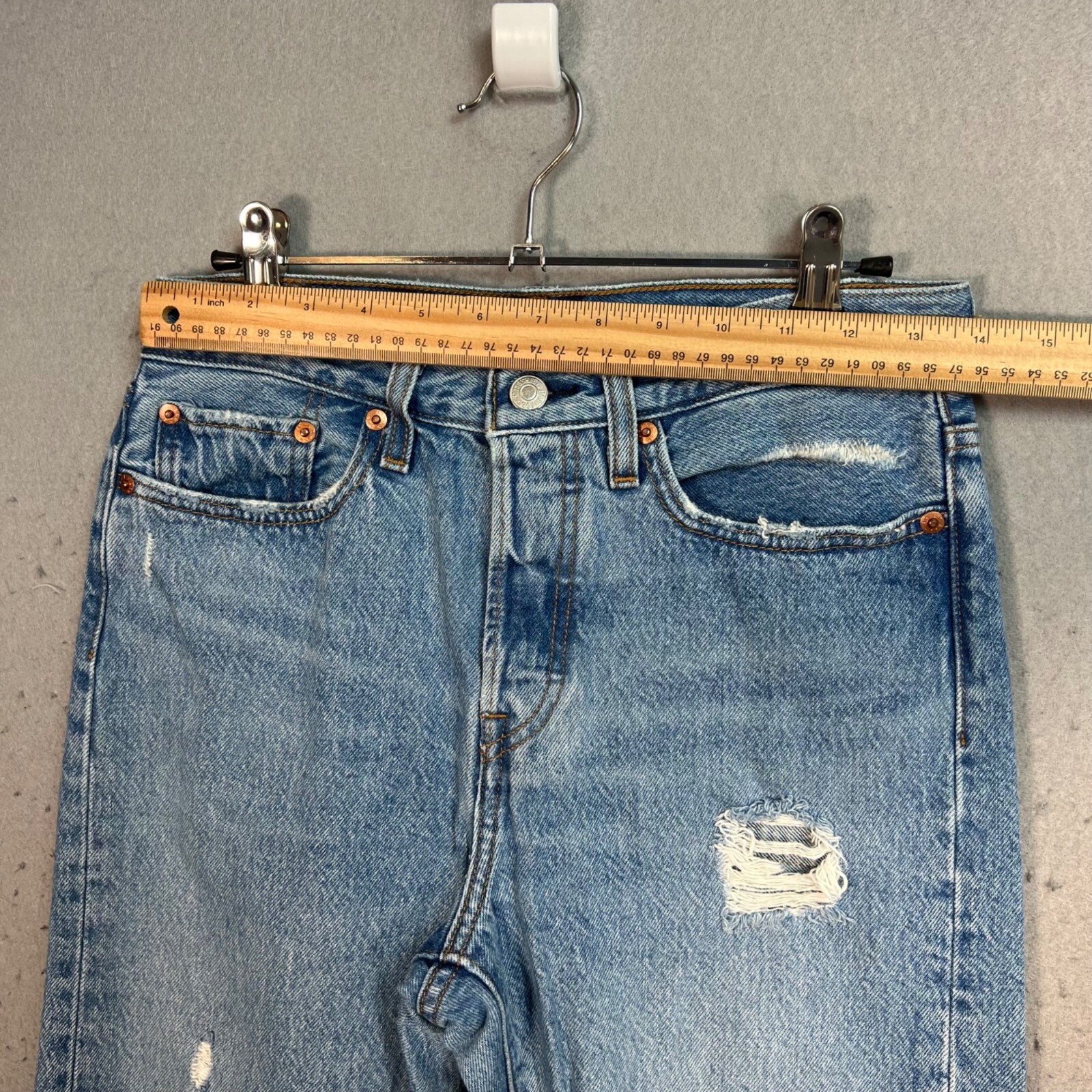 Levis Wedgie Straight Womens Distressed High-Rise Jeans 27 x 26 Light Wash Denim