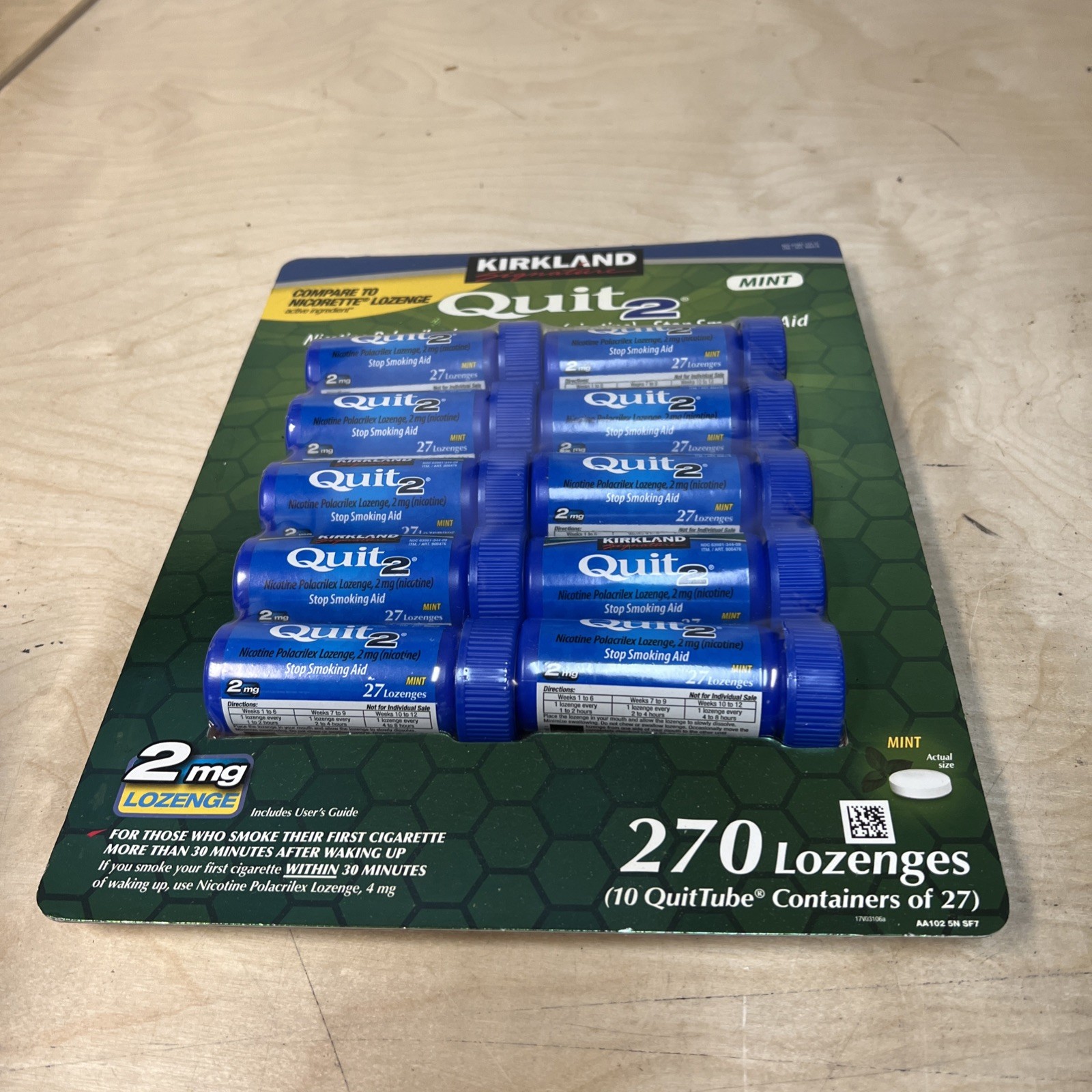 как выглядит Kirkland Signature Quit2 2mg Lozenge Mint 270 Count. Exp.01/2027 фото