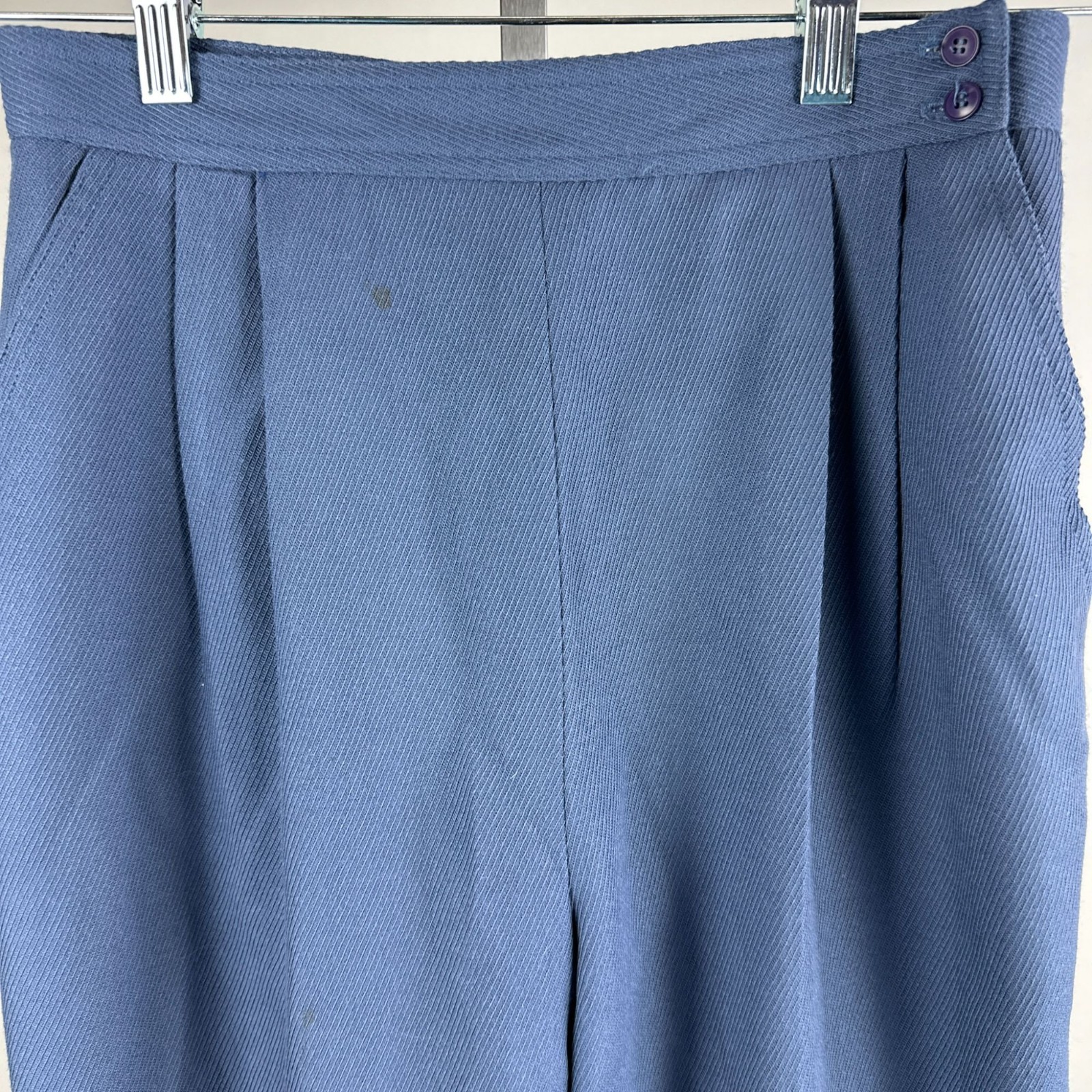 Vtg 80s Christian Dior Womens Blue Textured Pleated High Waist Dress Pants 12