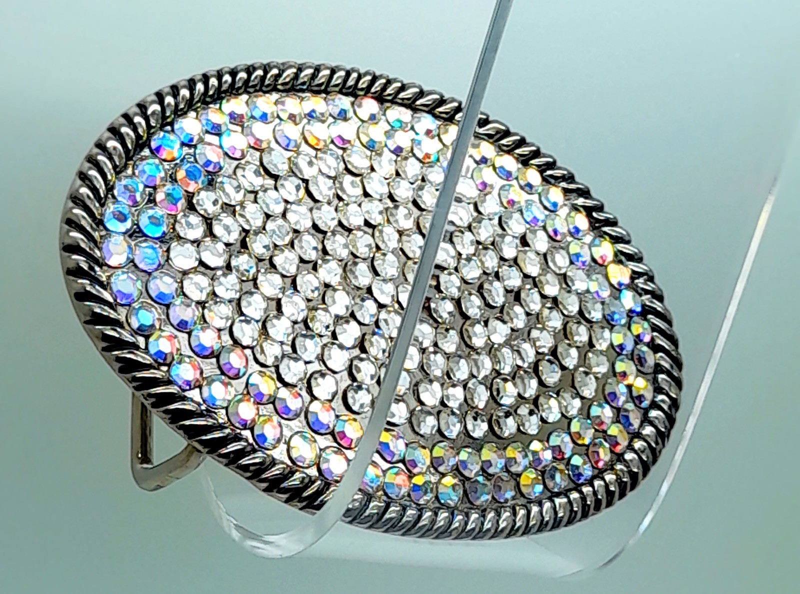 как выглядит Handmade party unisex oval shape with clear ab Rhinestone metal Belt Buckle фото