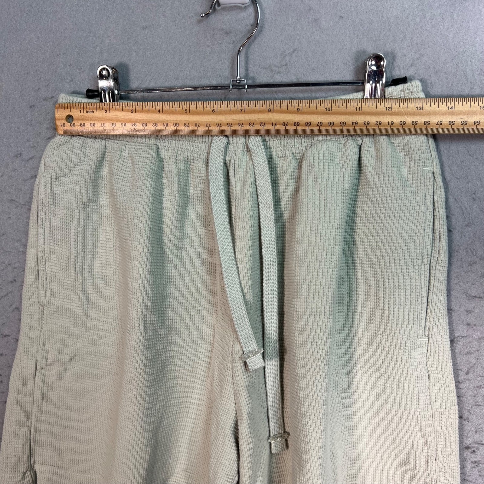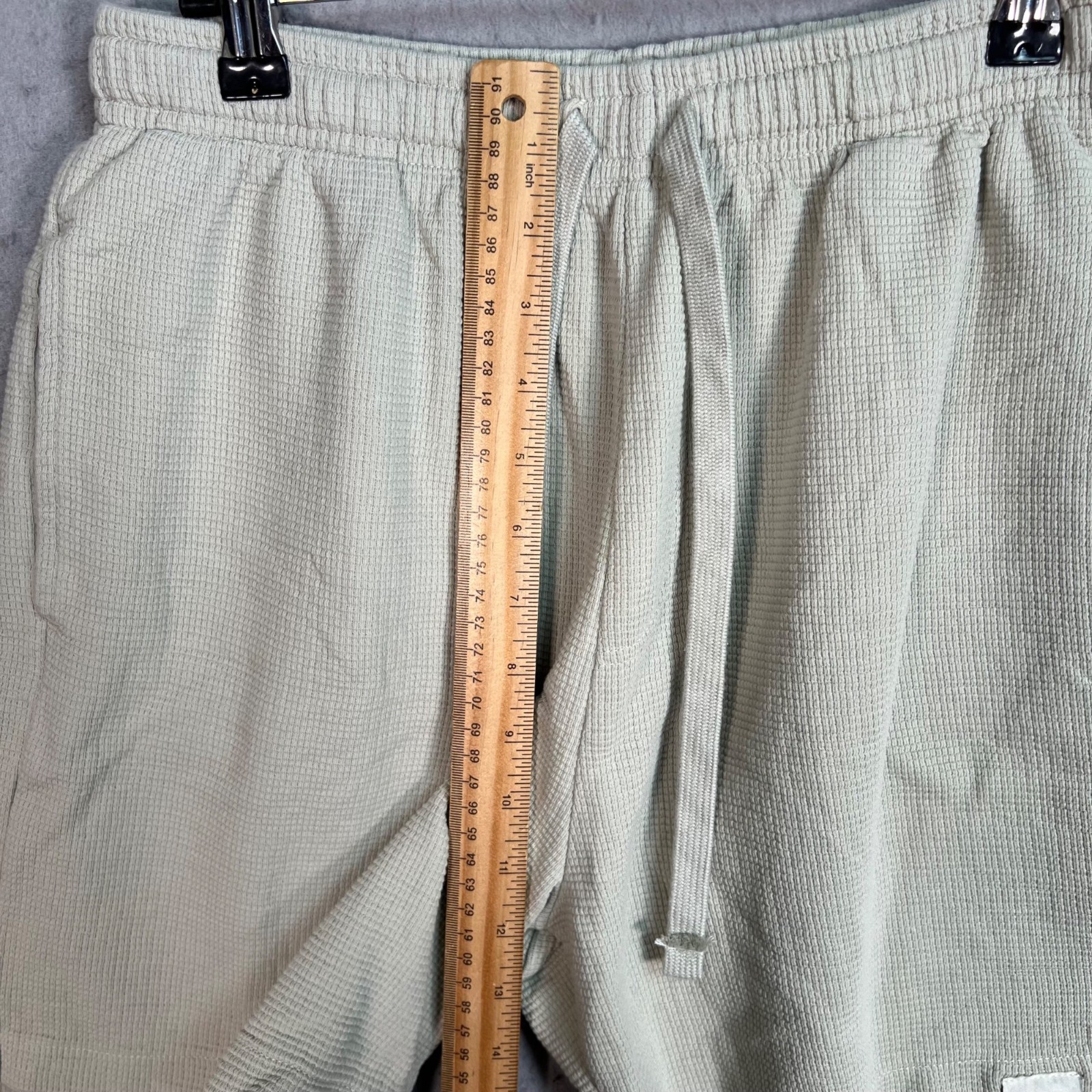 как выглядит Zara Mens Small Light Green Waffle Knit Cotton Shorts W/ Drawstring Pockets фото