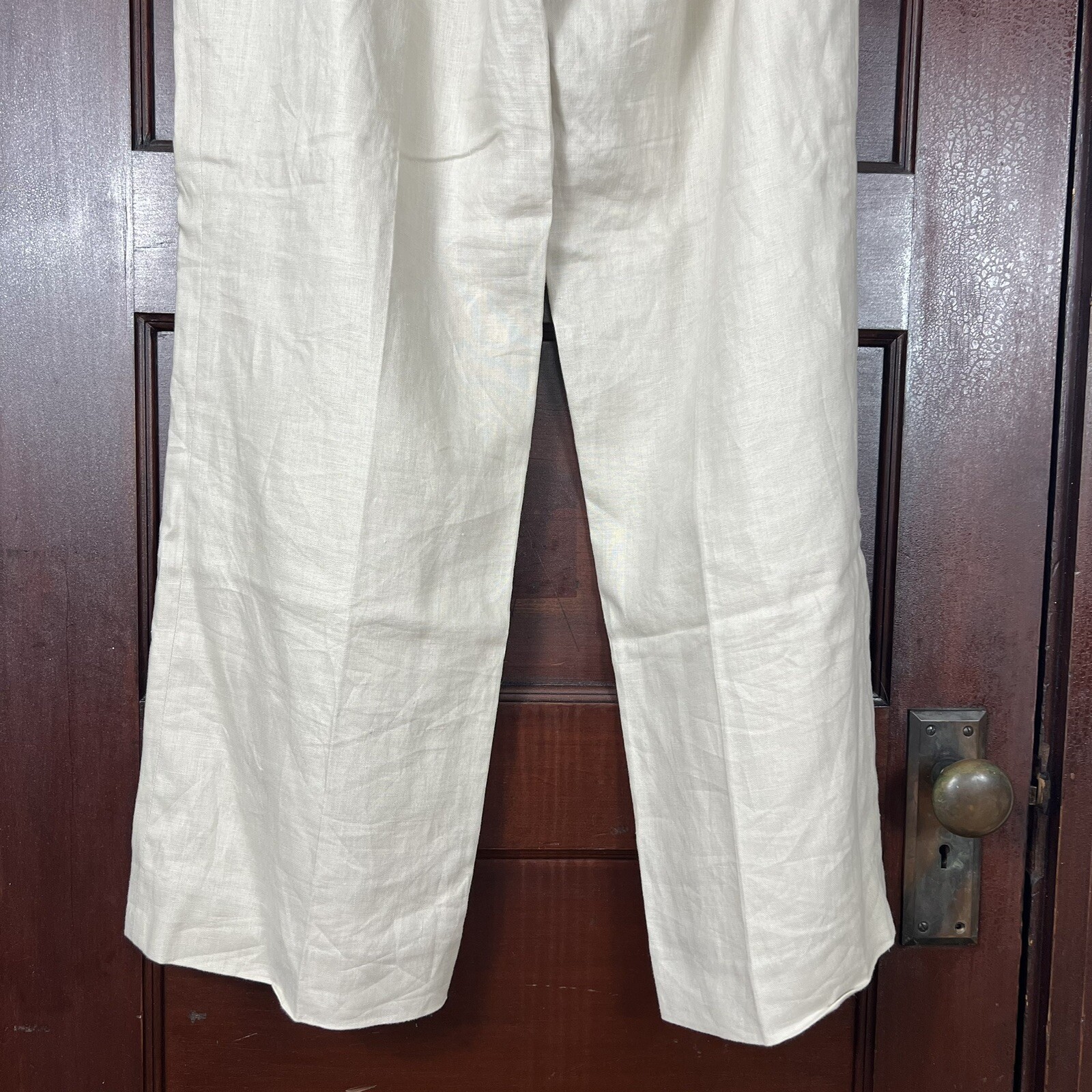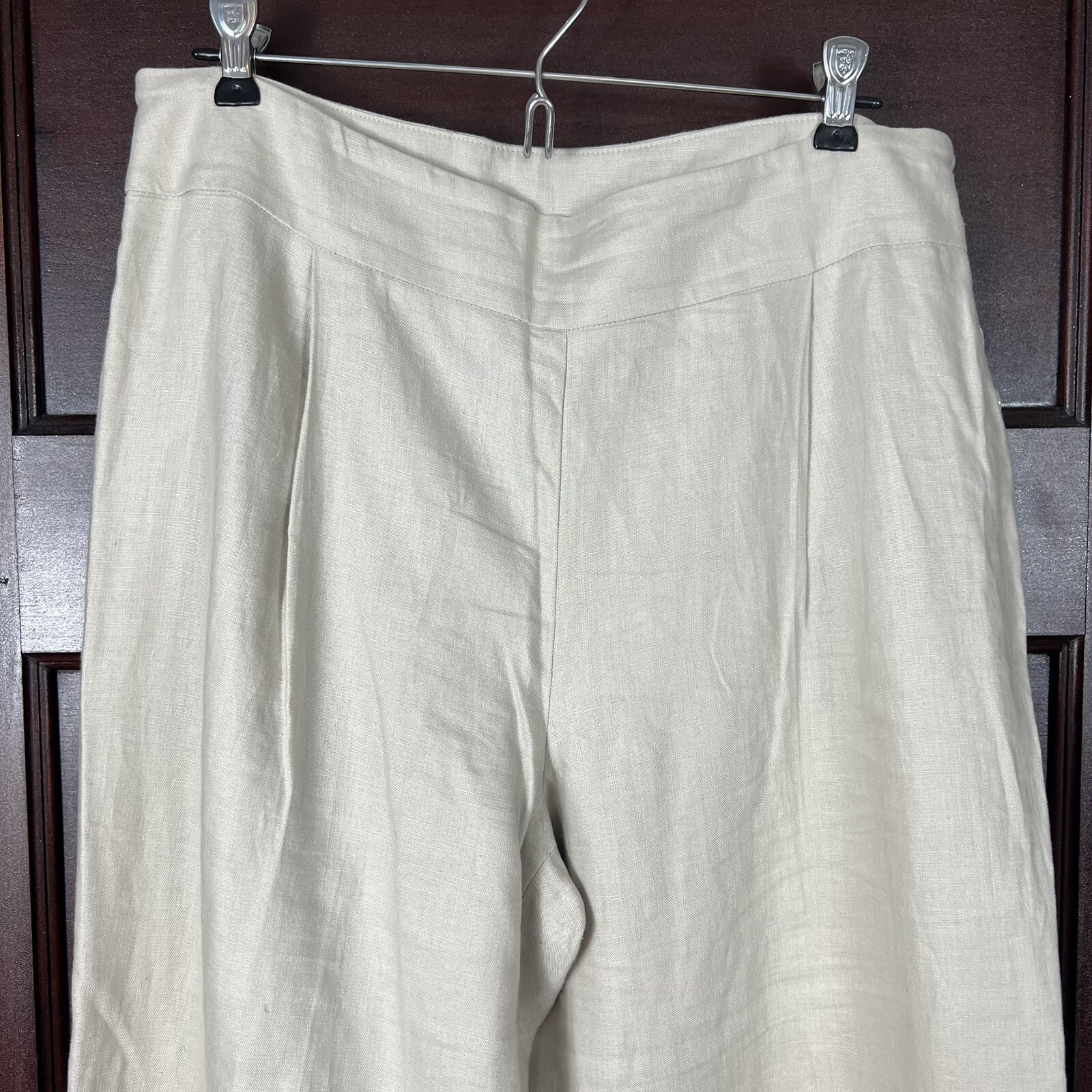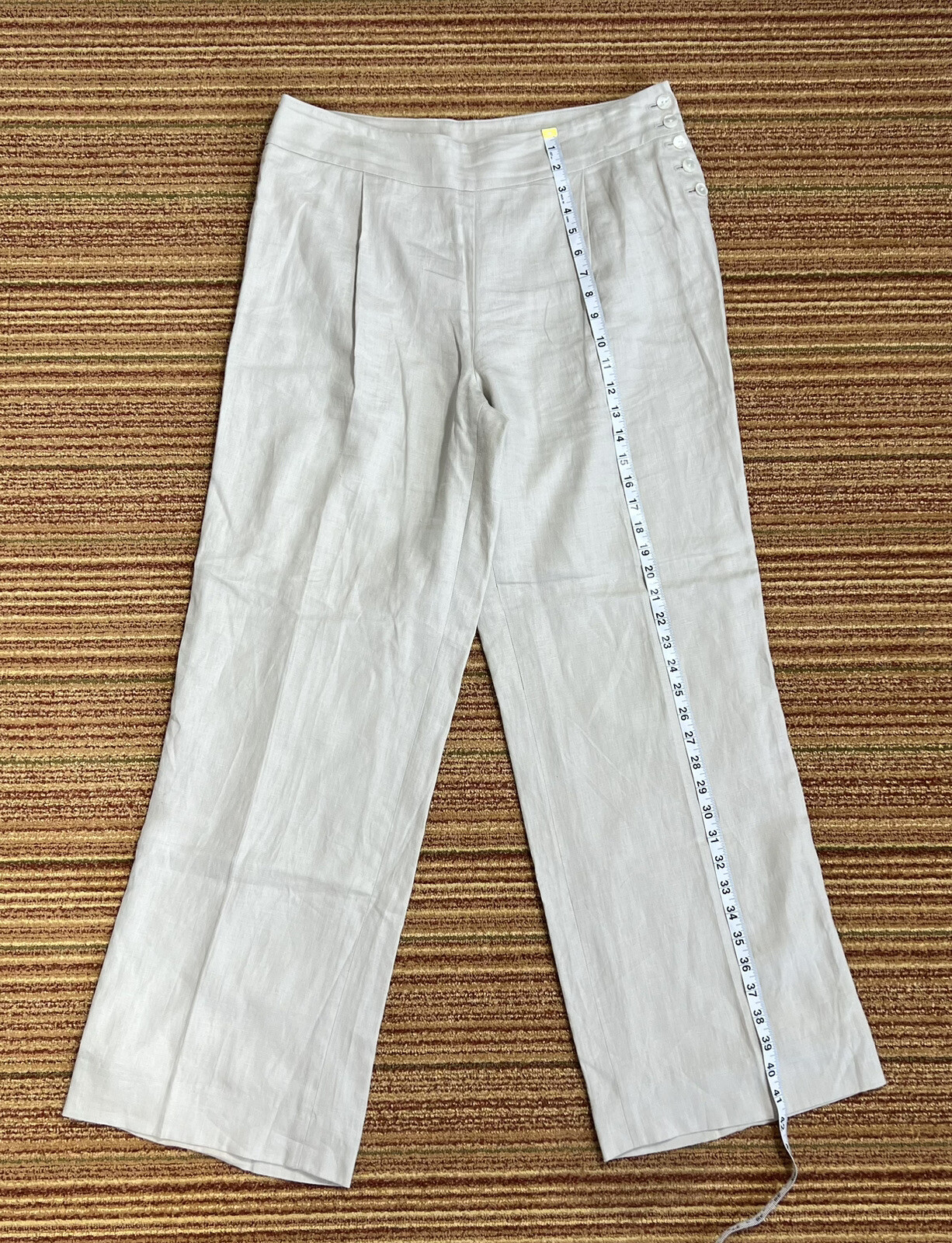 как выглядит Jones New York Signature Pants Womens 12 Beige Linen Lined Side Button Wide Leg фото