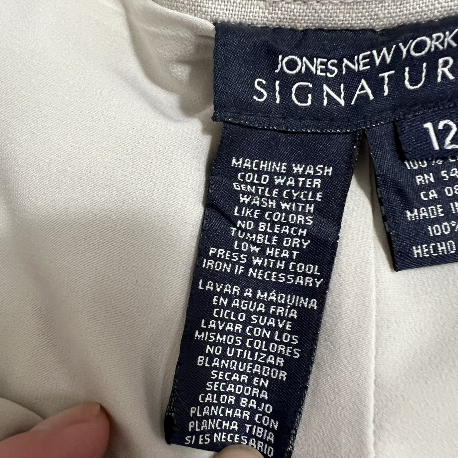Jones New York Signature Pants Women's 12 Beige Linen Lined Side Button Wide Leg