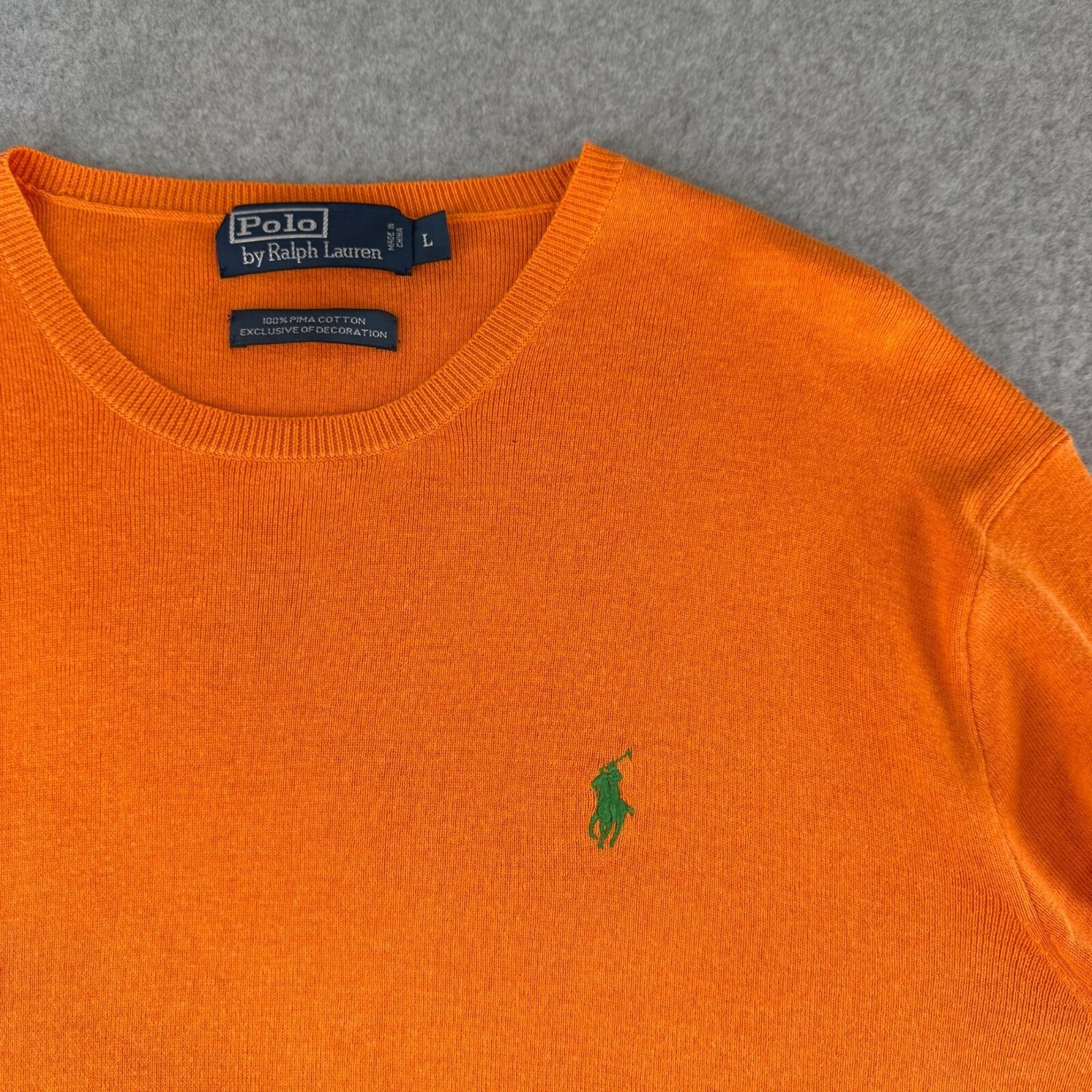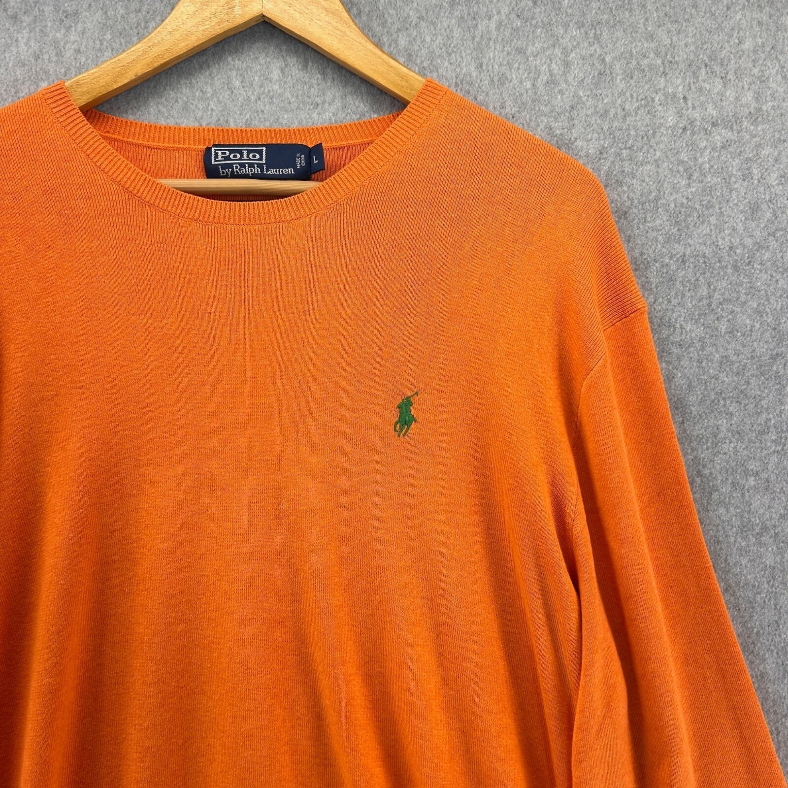 Polo Ralph Lauren Size Large Orange Crewneck Sweater Orange Pony Logo Men's Prep