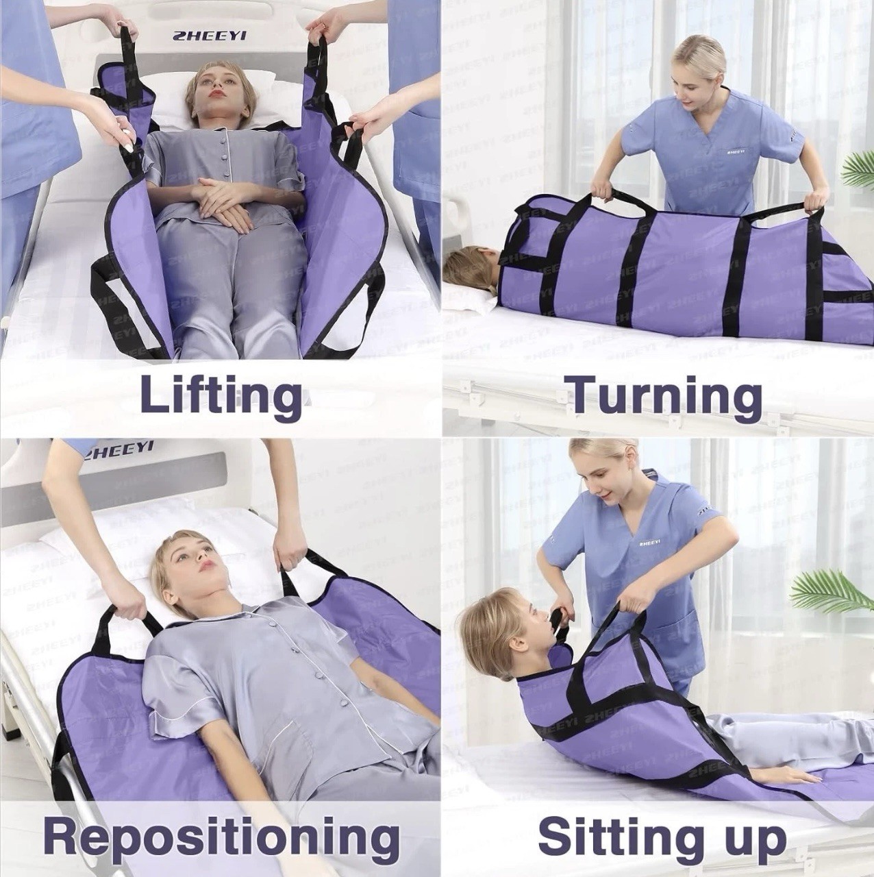 Positioning Bed Pad with Reinforced Handles 43 x 36 Patient Transfer Purple