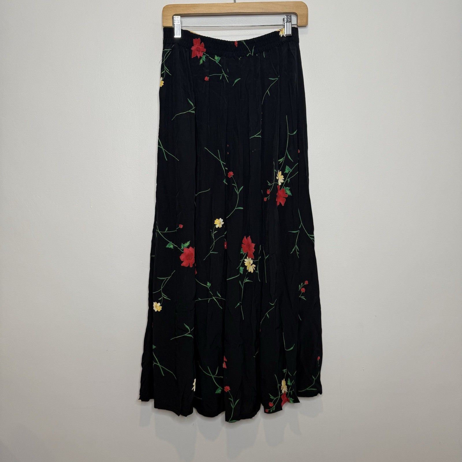 как выглядит LIMITED Vintage Y2K Maxi Skirt Women M Whimsigoth Black Floral Button Front 90s фото