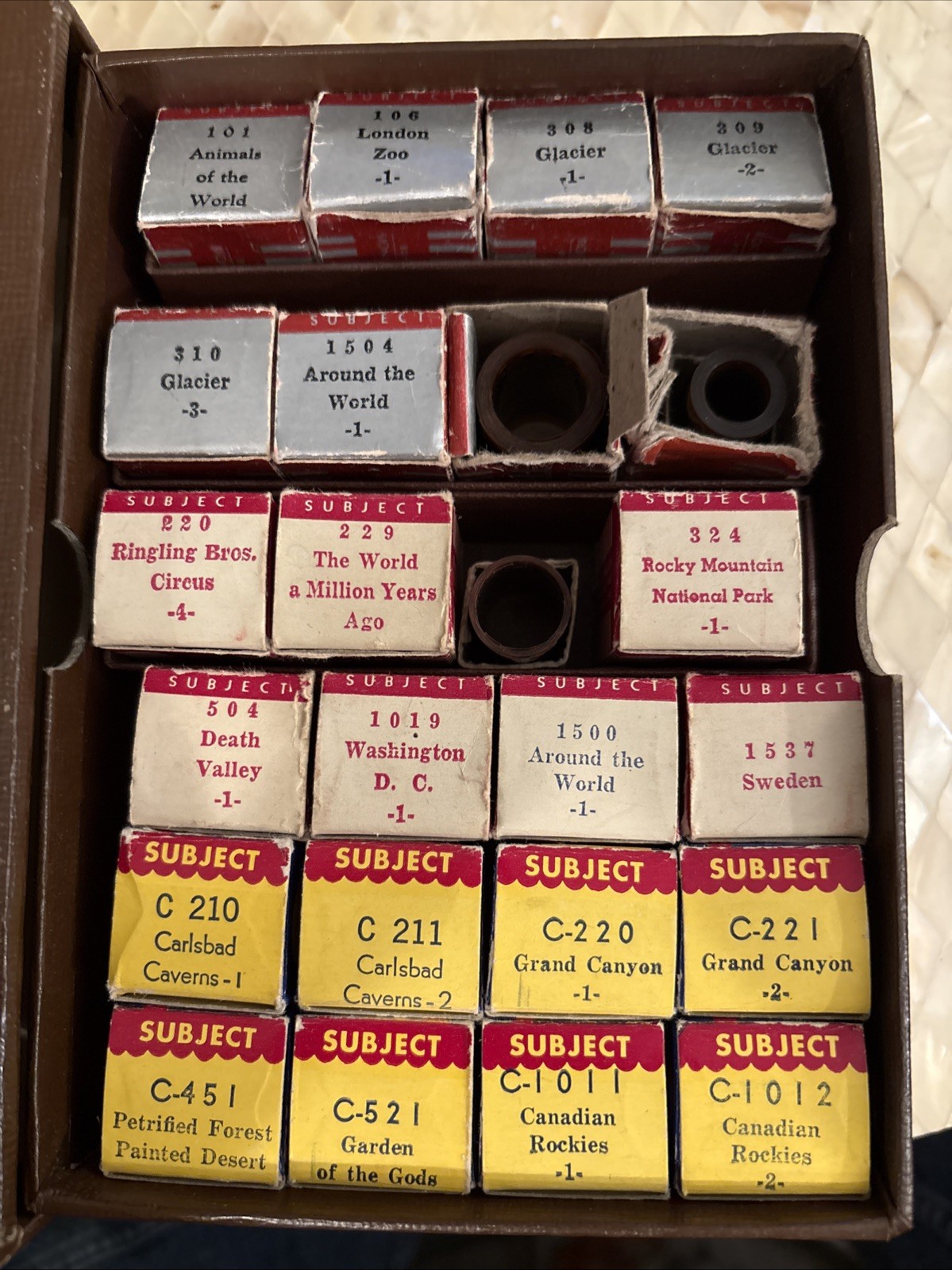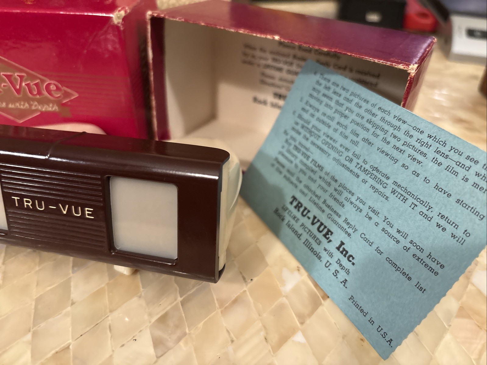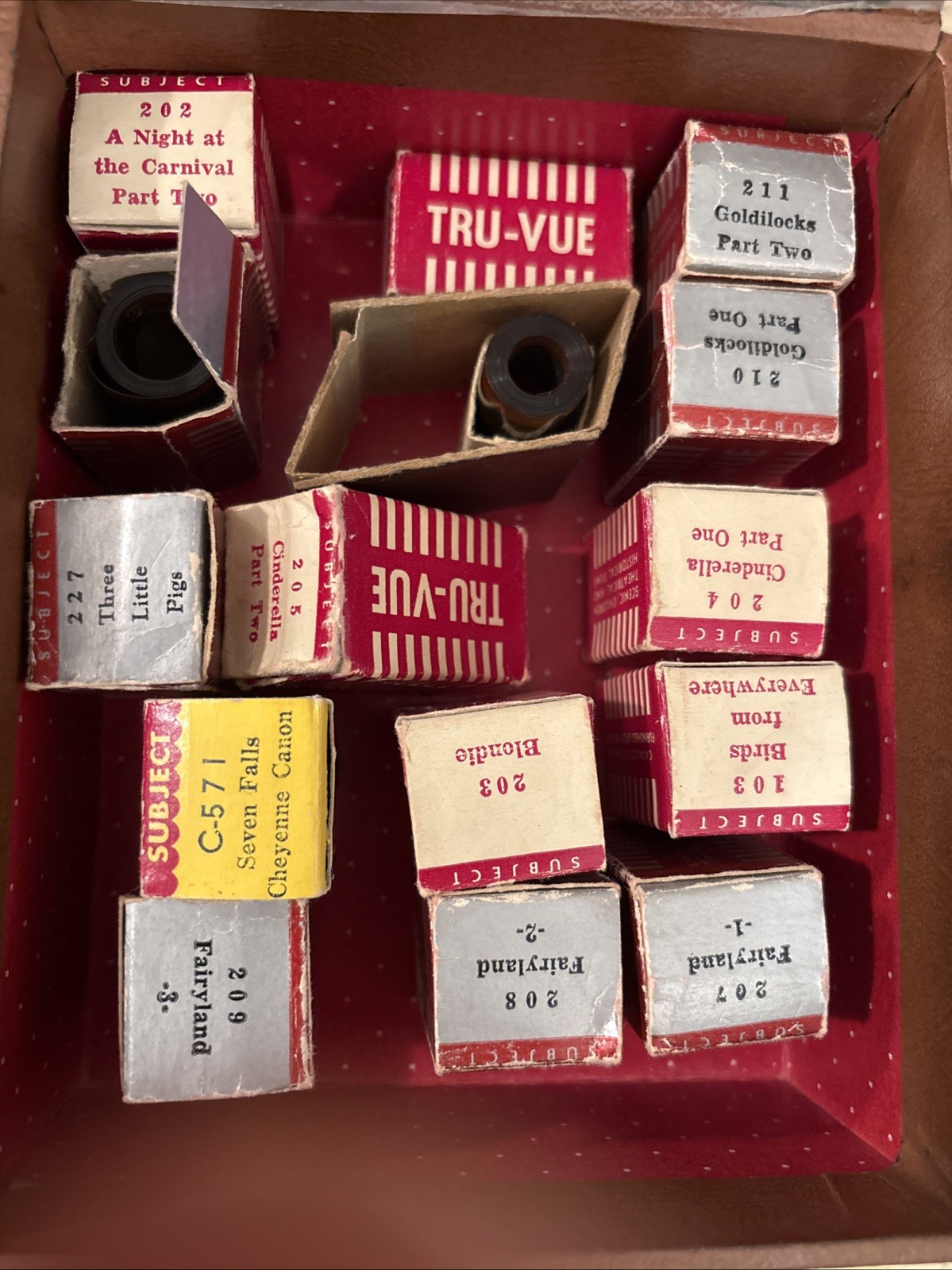 • TRU-VUE Stereoscope 35mm Film Strip Viewer In Box 1940/46 w 39 Film Strips