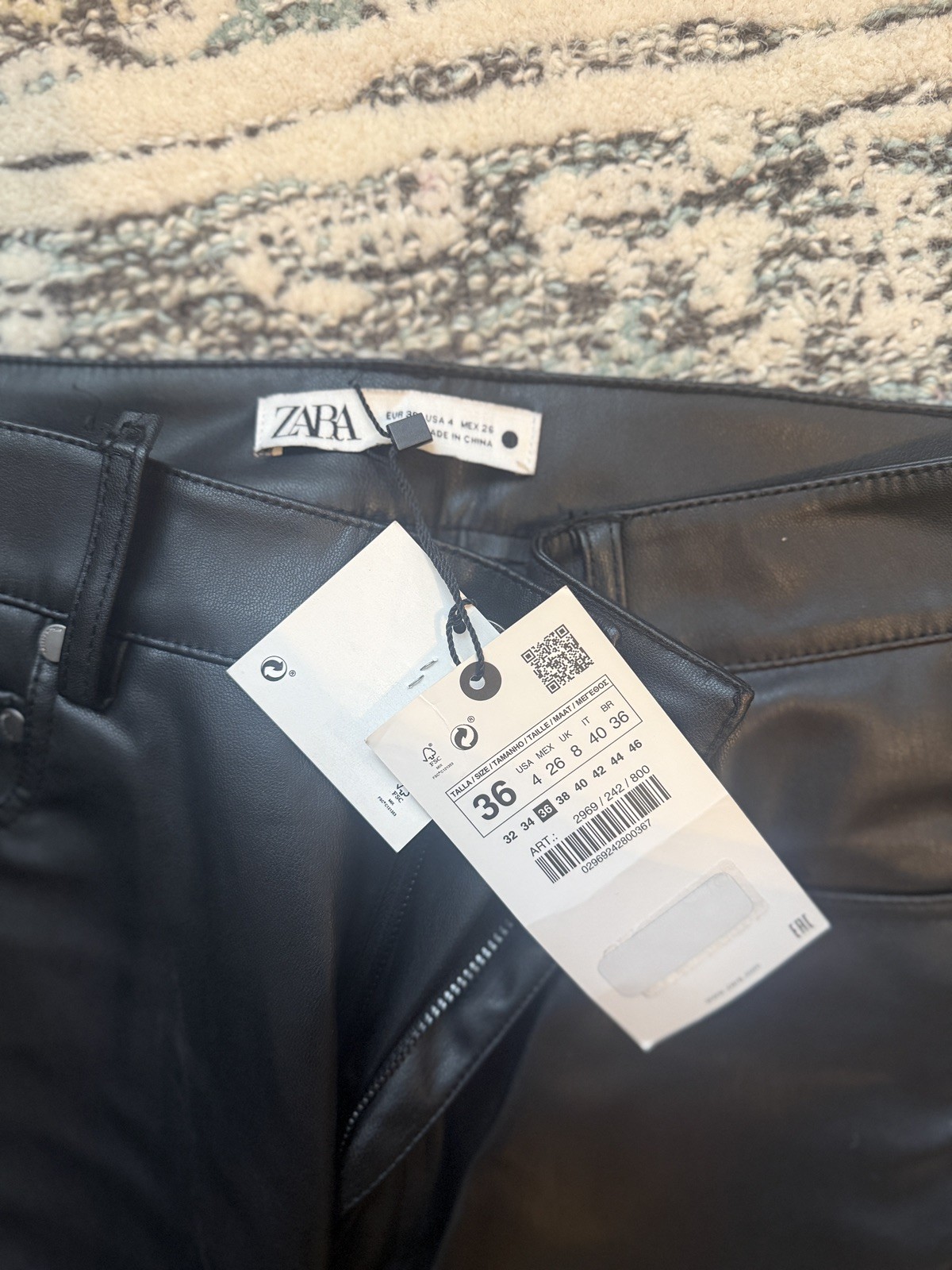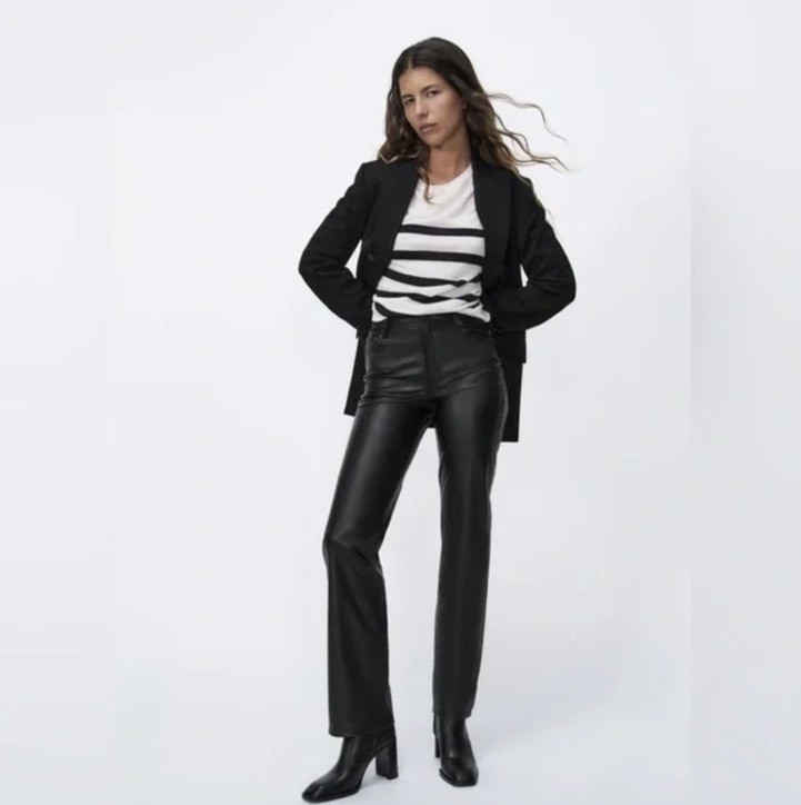 как выглядит NWT Zara 90 s Wide Leg Faux Leather Trouser Women s Size 4 фото