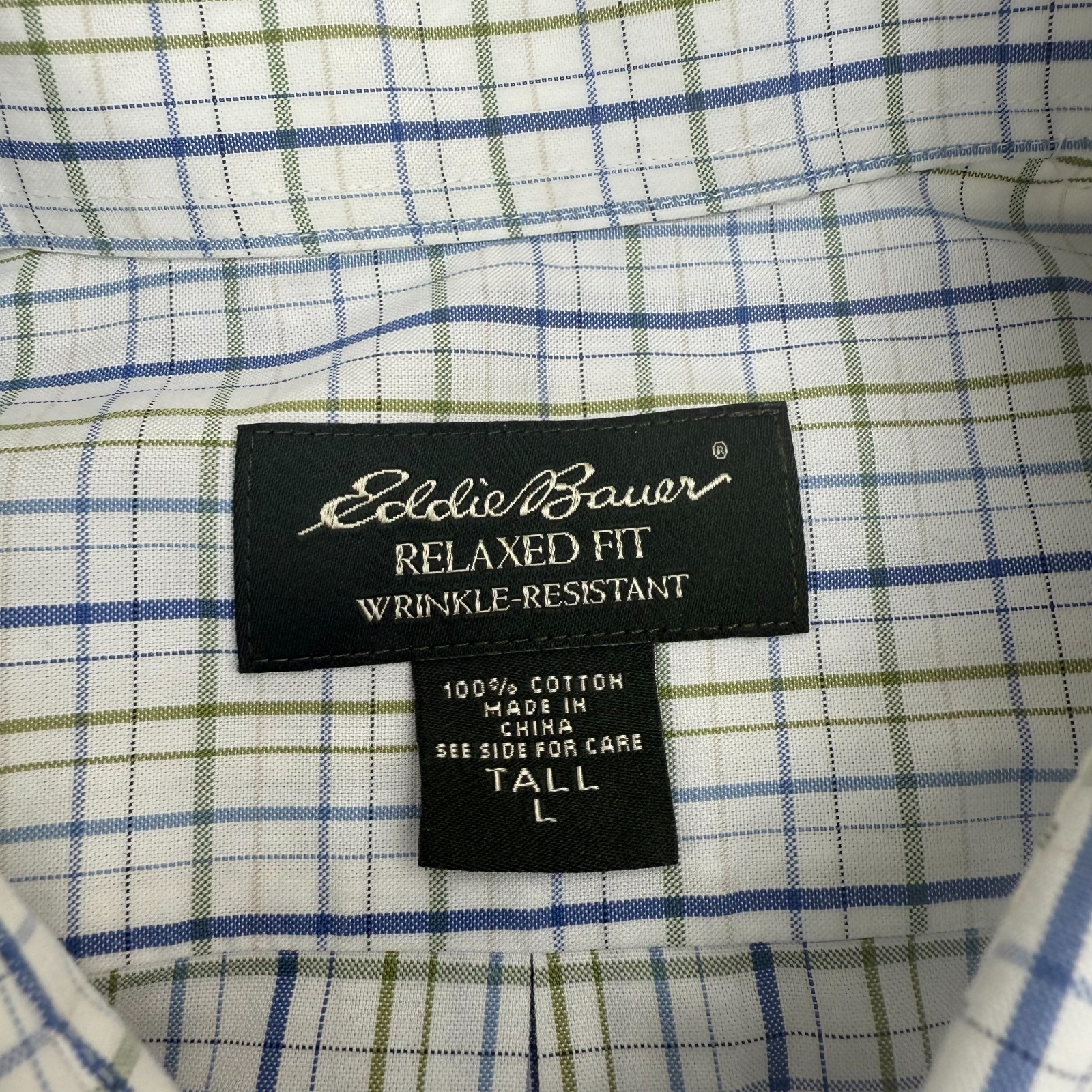 Eddie Bauer Shirt Mens L Tall Multi Plaid Cotton Wrinkle-Resistant Relaxed Fit