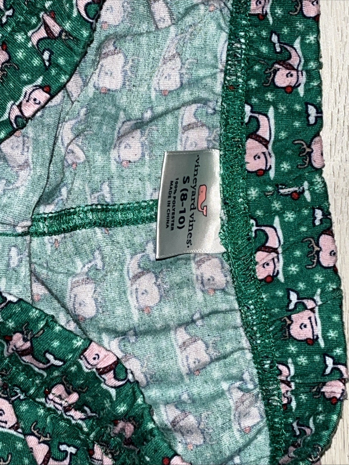 Vineyard Vines Christmas Pajama Lounge Pants Youth Small Green Whale Reindeer