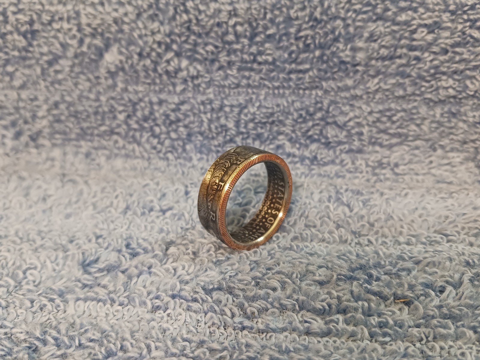 1985 Kennedy Half Dollars size 10 1/2 coin ring handmade mixed metals A