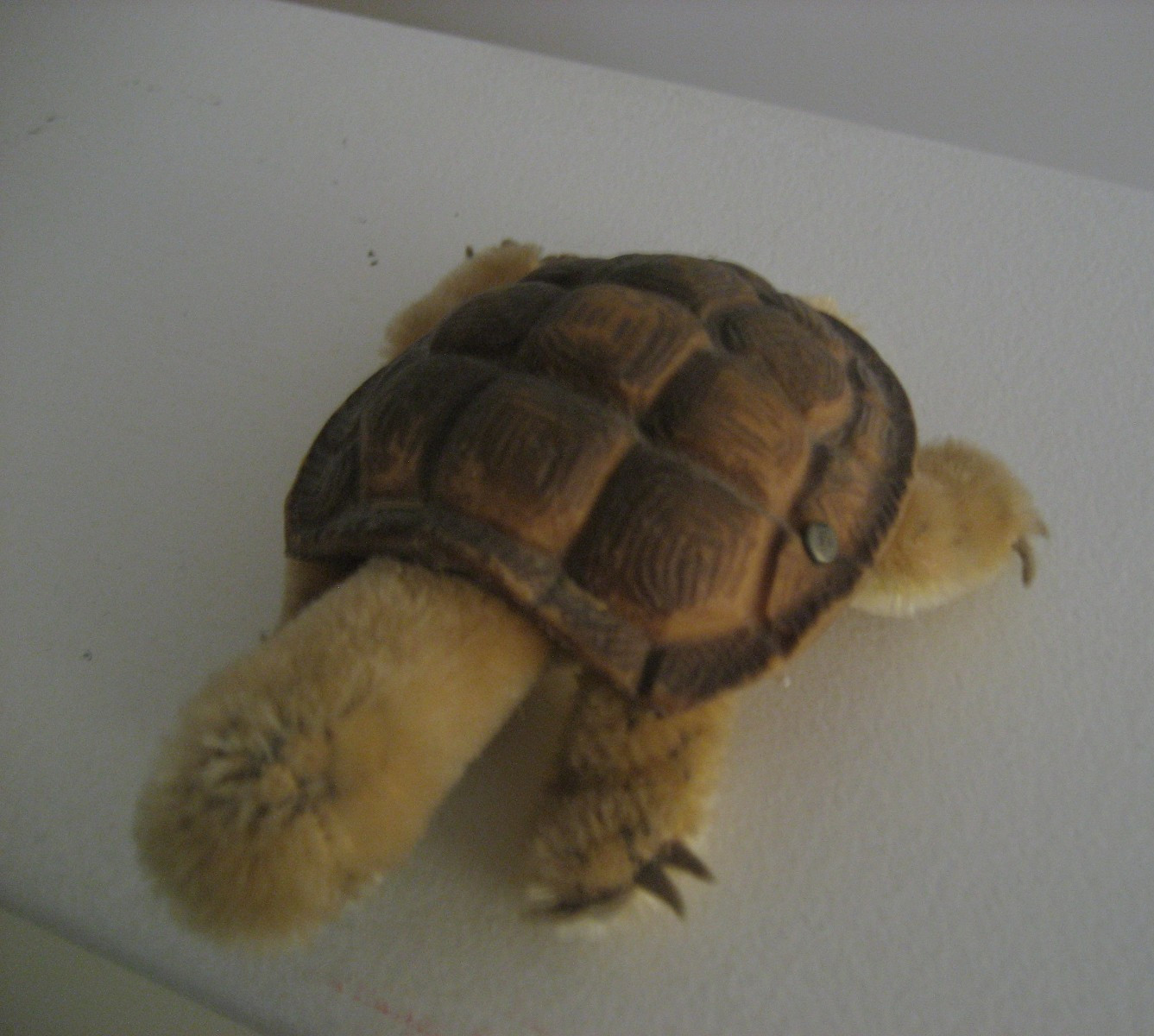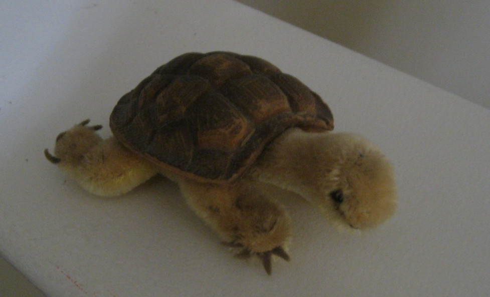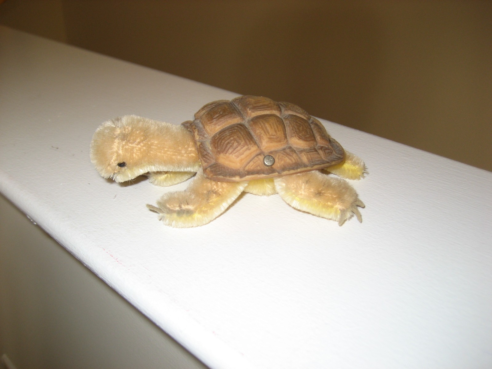 STEIFF TAN BROWN TURTLE WITH BRASS BUTTON ON SHELL - NO NAME TAG - USED COND