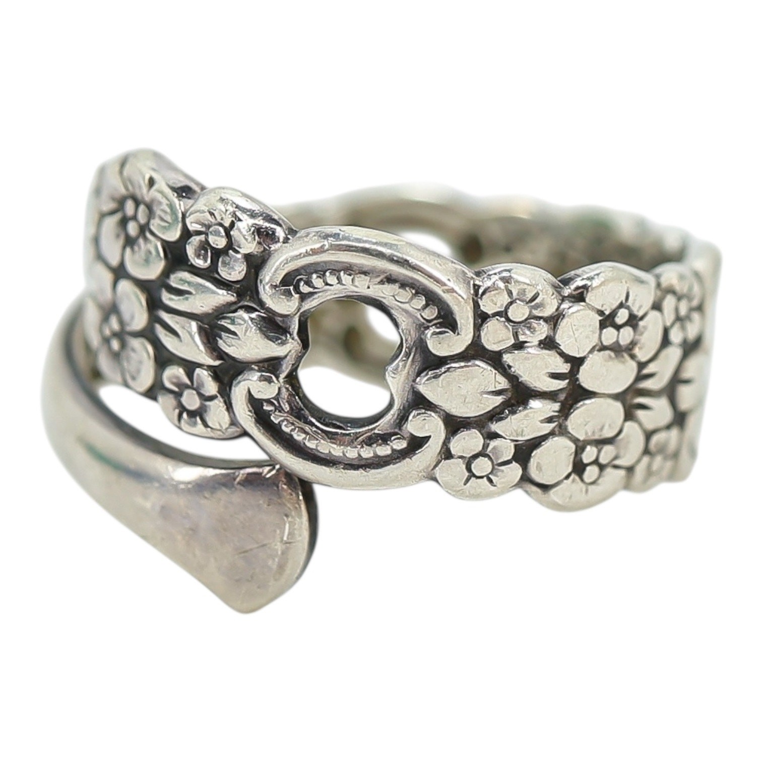 как выглядит Vintage Sterling Silver Openwork Filigree Bypass Ring Size 8 Ornate Floral фото
