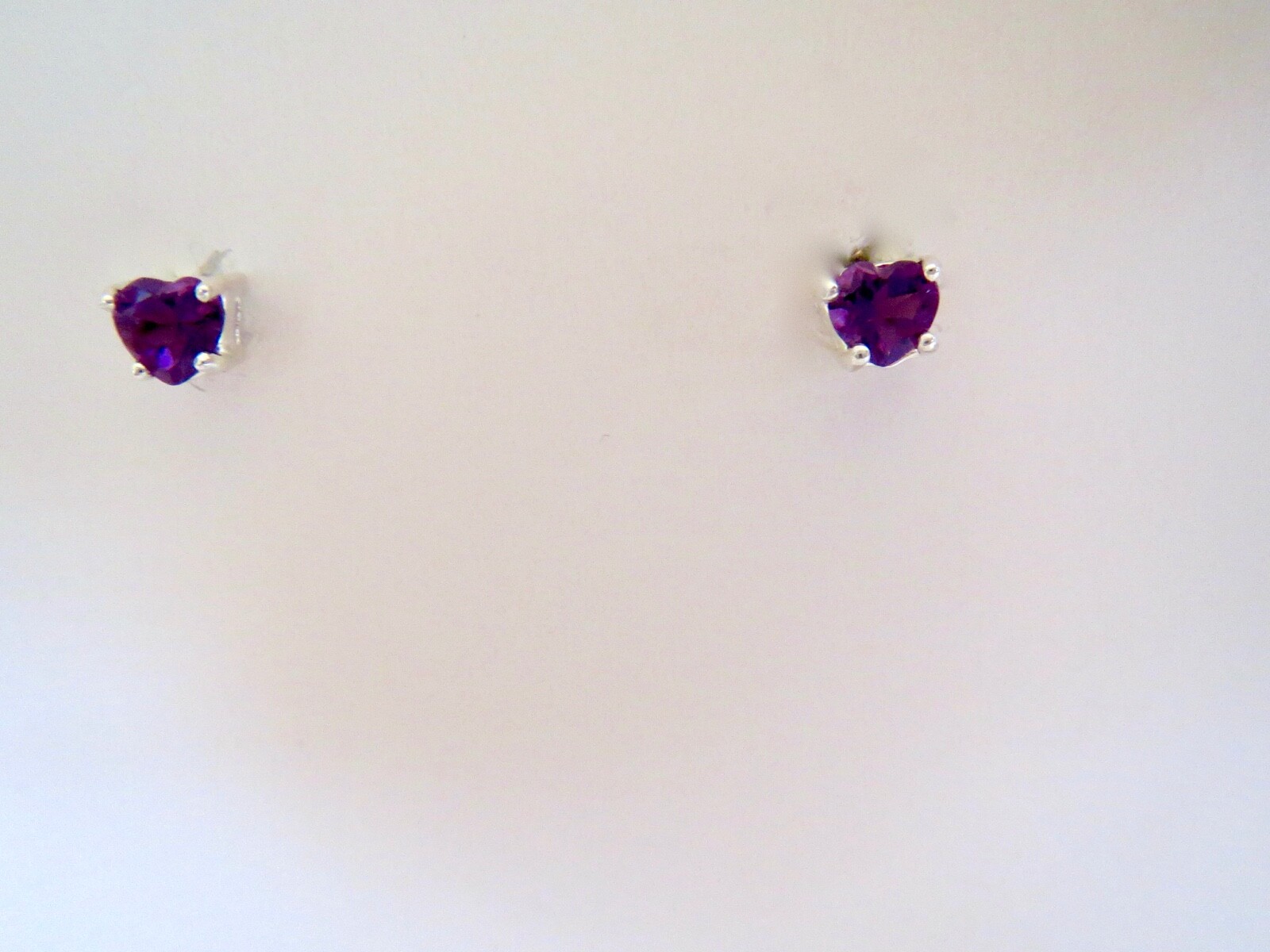New STERLING SILVER Heart Shaped AMETHYST STUD EARRINGS 4mm Heart