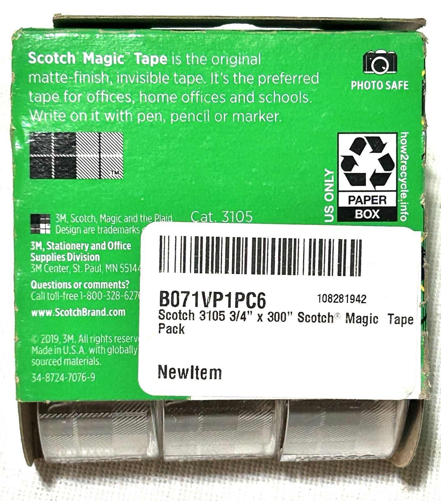 90 ROLLS 3M Scotch Magic Tape 3105 3/4 x 300 EACH LOT of Thirty 3-packs
