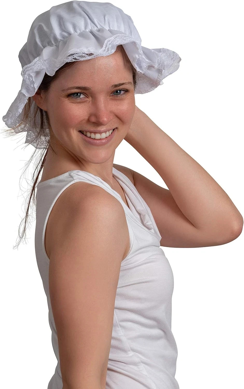 White Mob Cap Accessory - Grandma Night Bonnet Colonial Costume Nightcap Mop Hat