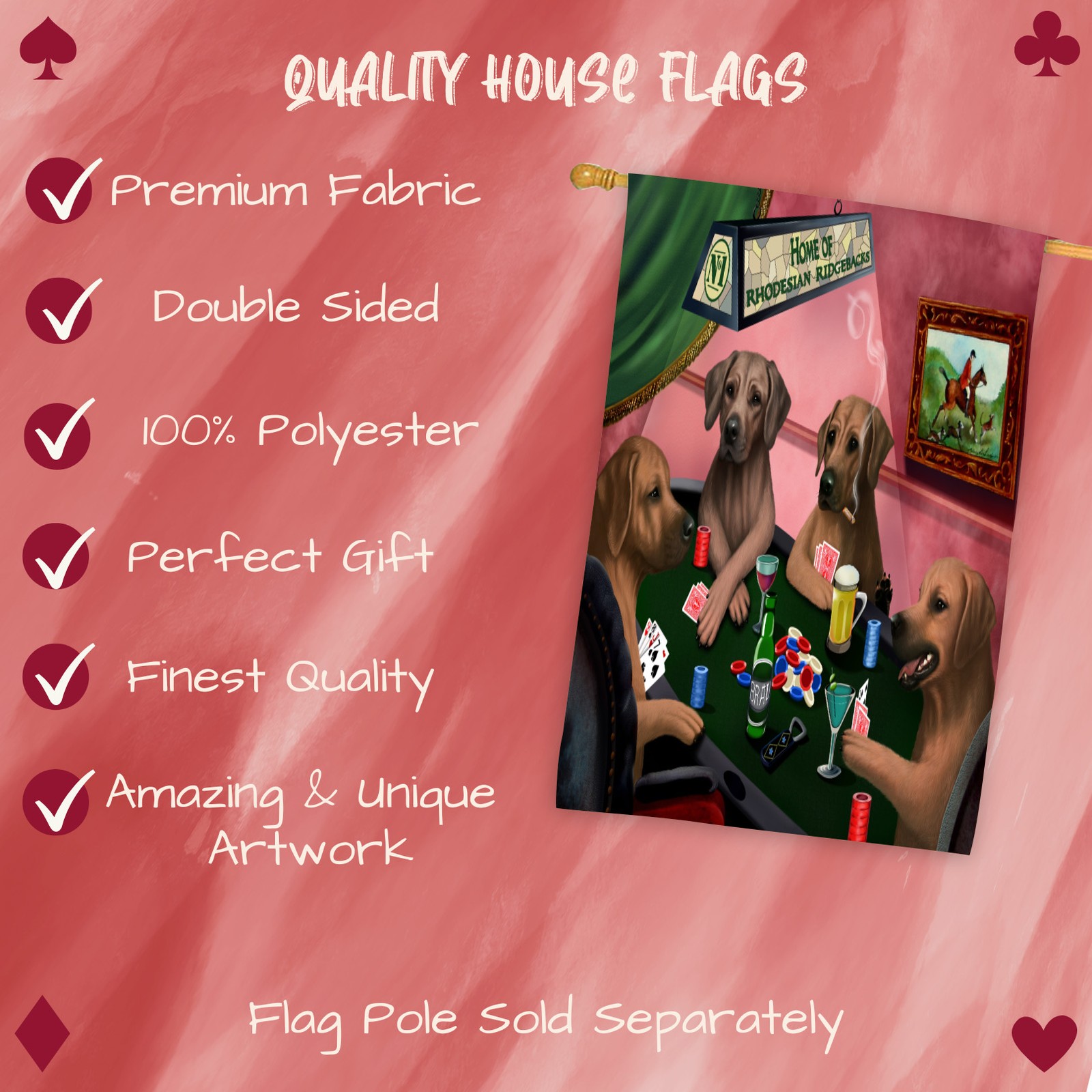 как выглядит Home of Rhodesian Ridgeback Dogs Playing Poker House Flag for Dads Birthday фото