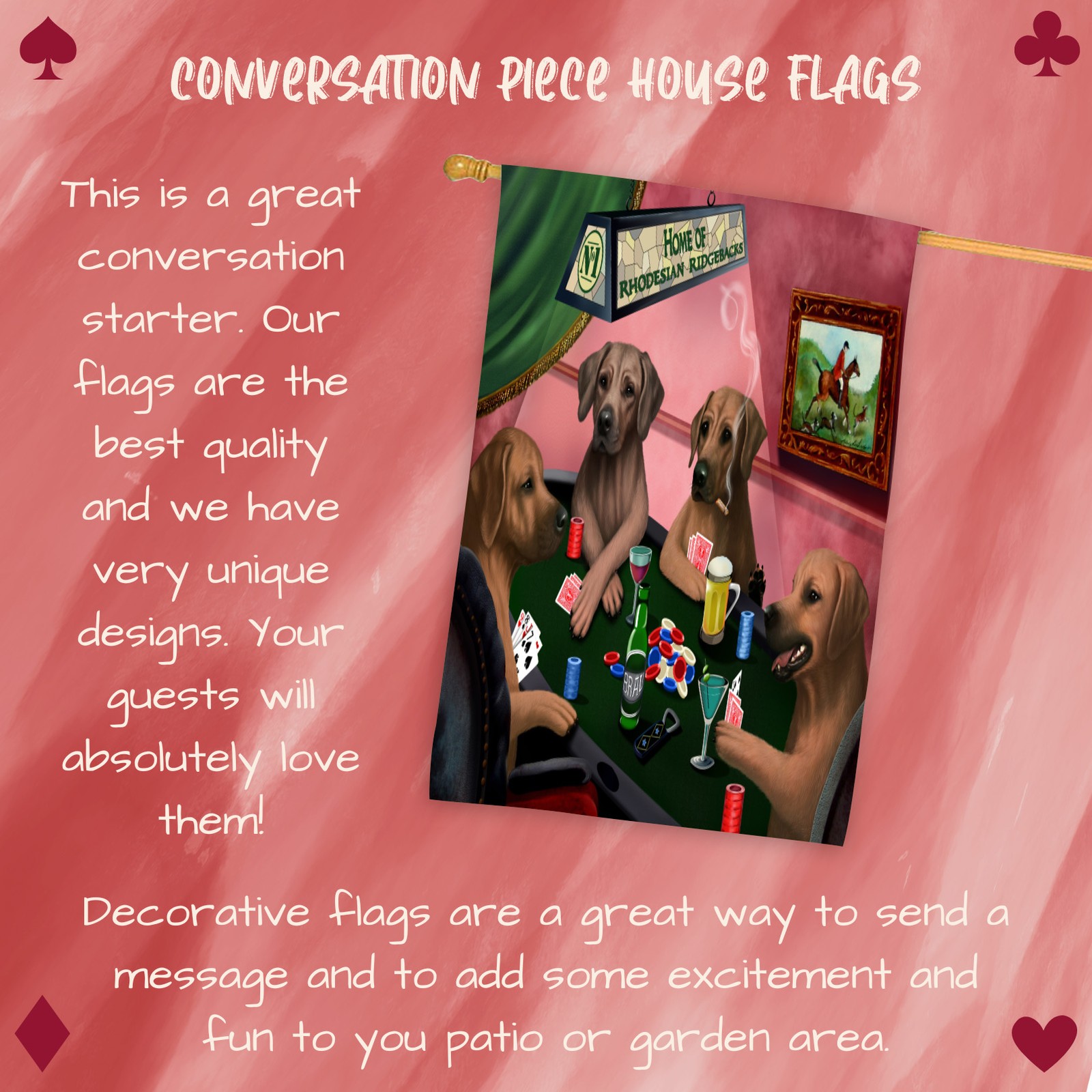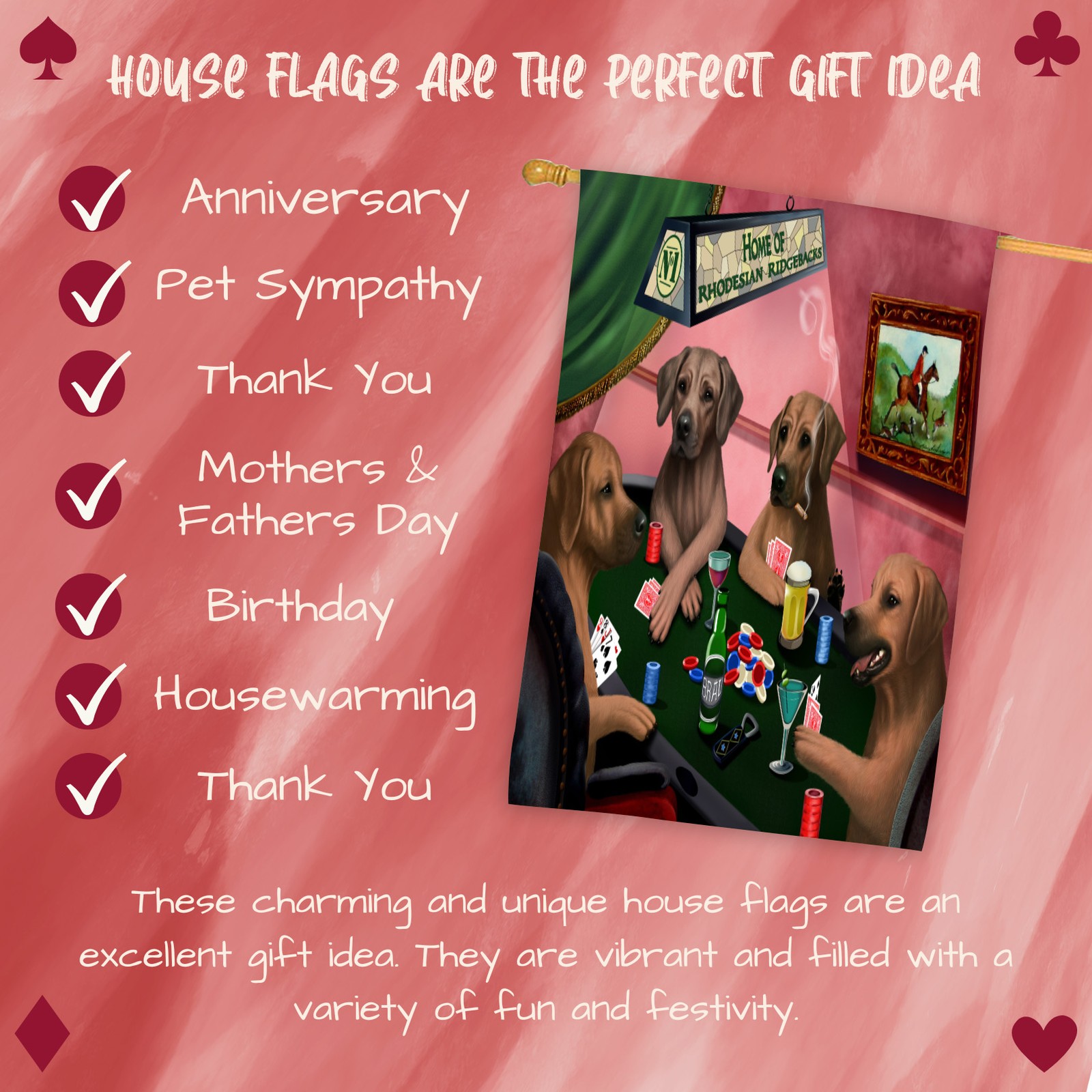 Home of Rhodesian Ridgeback Dogs Playing Poker House Flag for Dad's Birthday