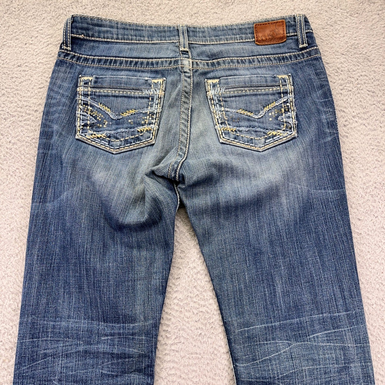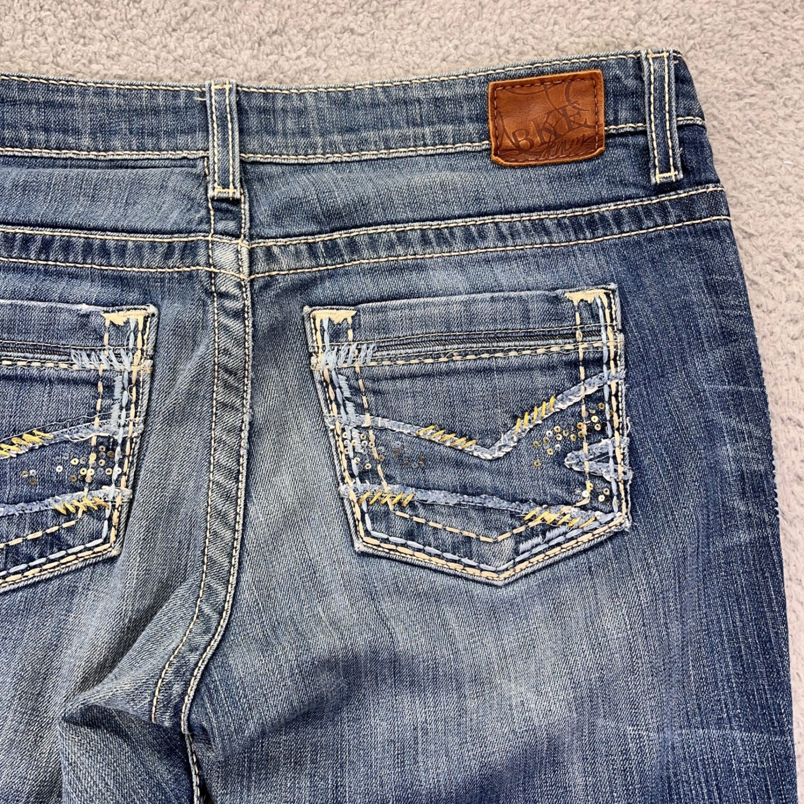 как выглядит BKE Payton Jeans Women 30 R Blue Stretch Bootcut Distressed Medium Wash Denim фото