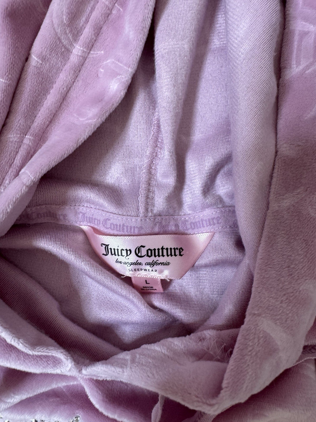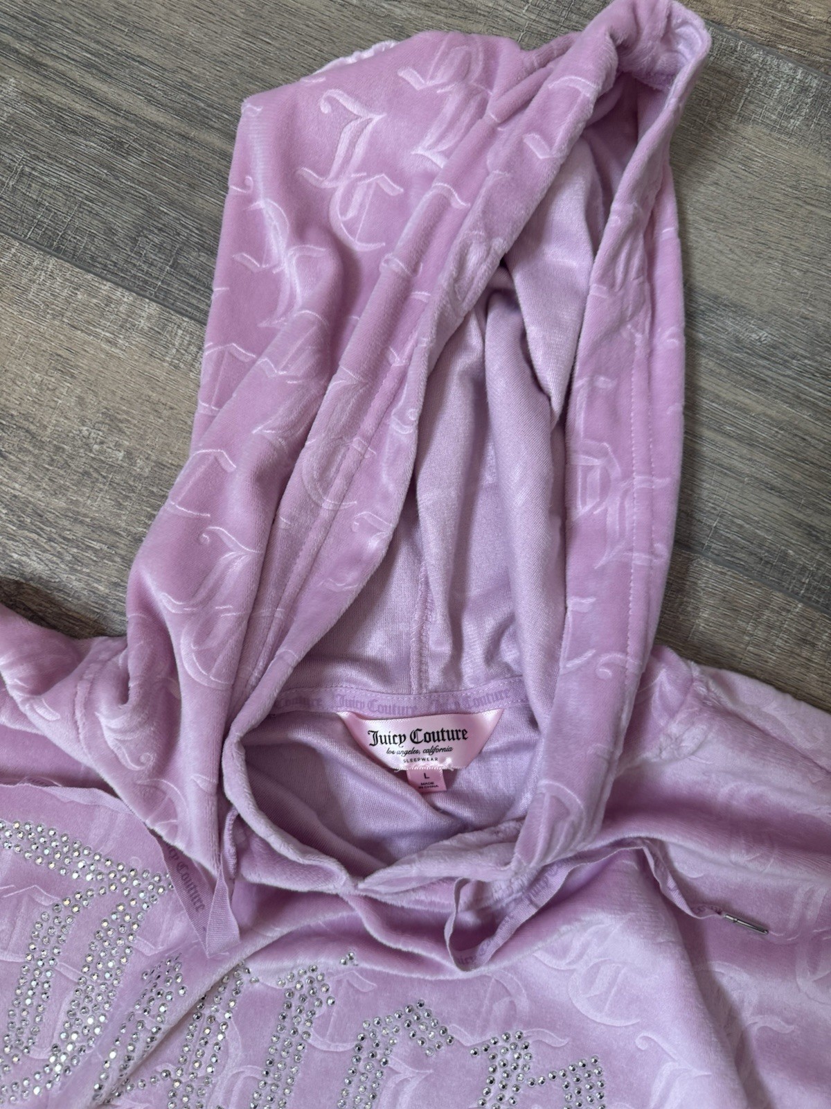 JUICY COUTURE Sleepwear Velour Bling Hoodie Pant Set Pink Sz L Lounge Spellout