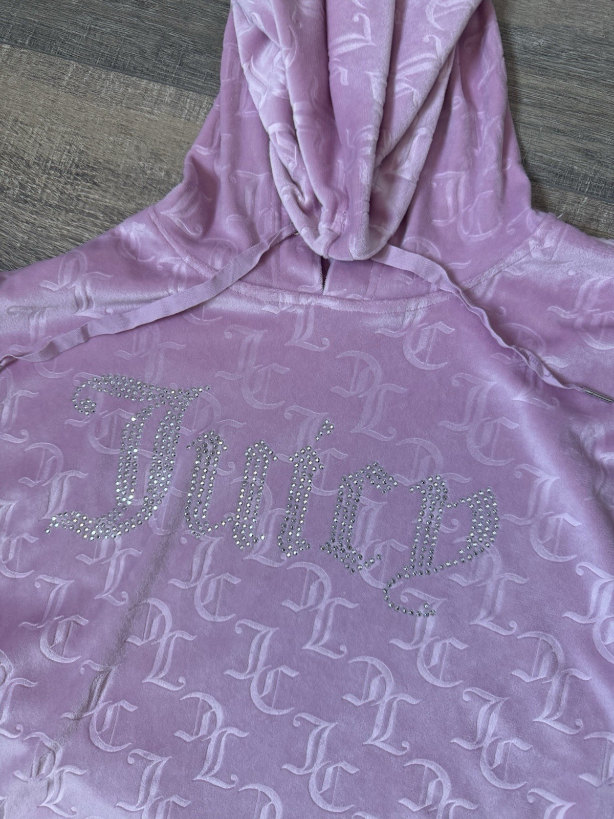 как выглядит JUICY COUTURE Sleepwear Velour Bling Hoodie Pant Set Pink Sz L Lounge Spellout фото