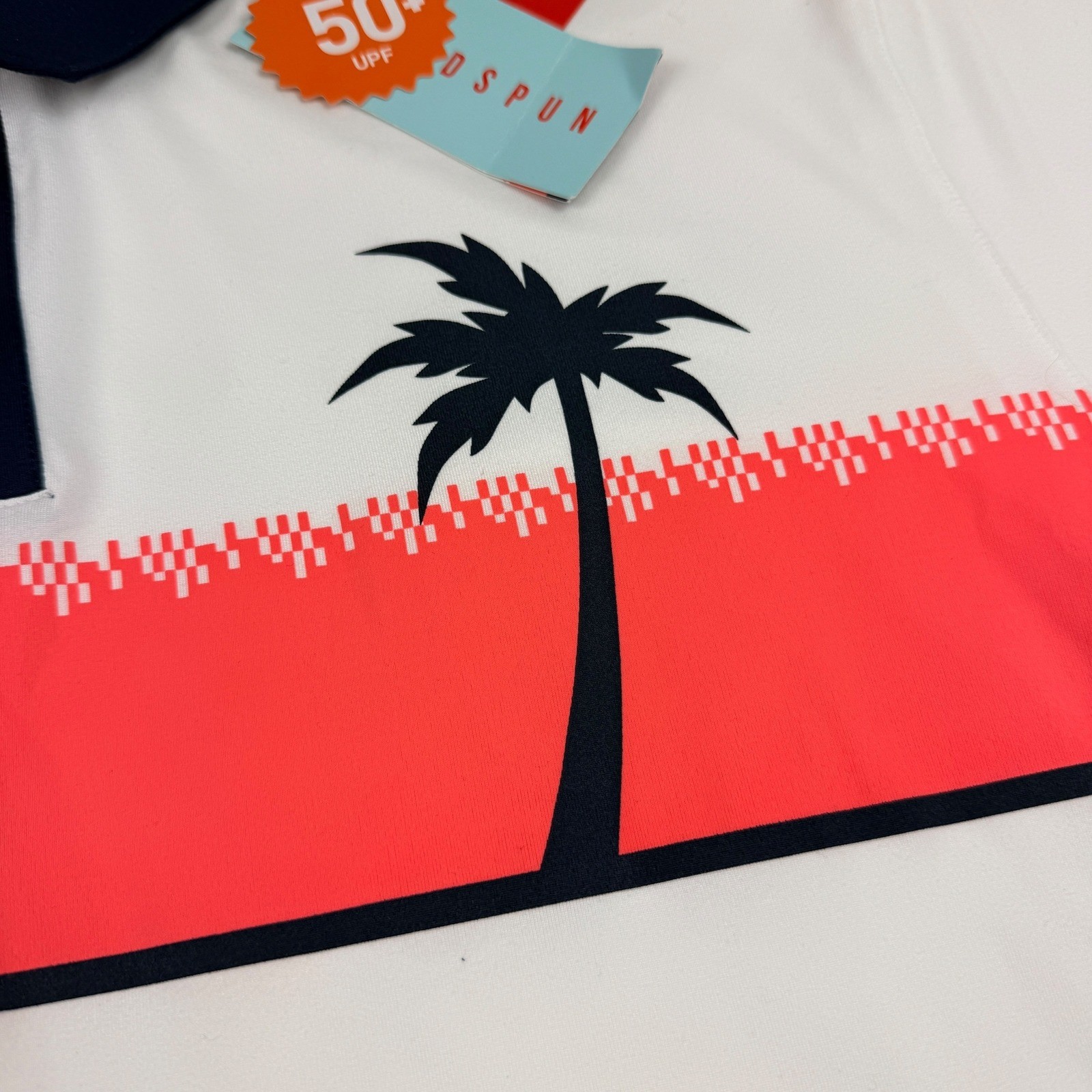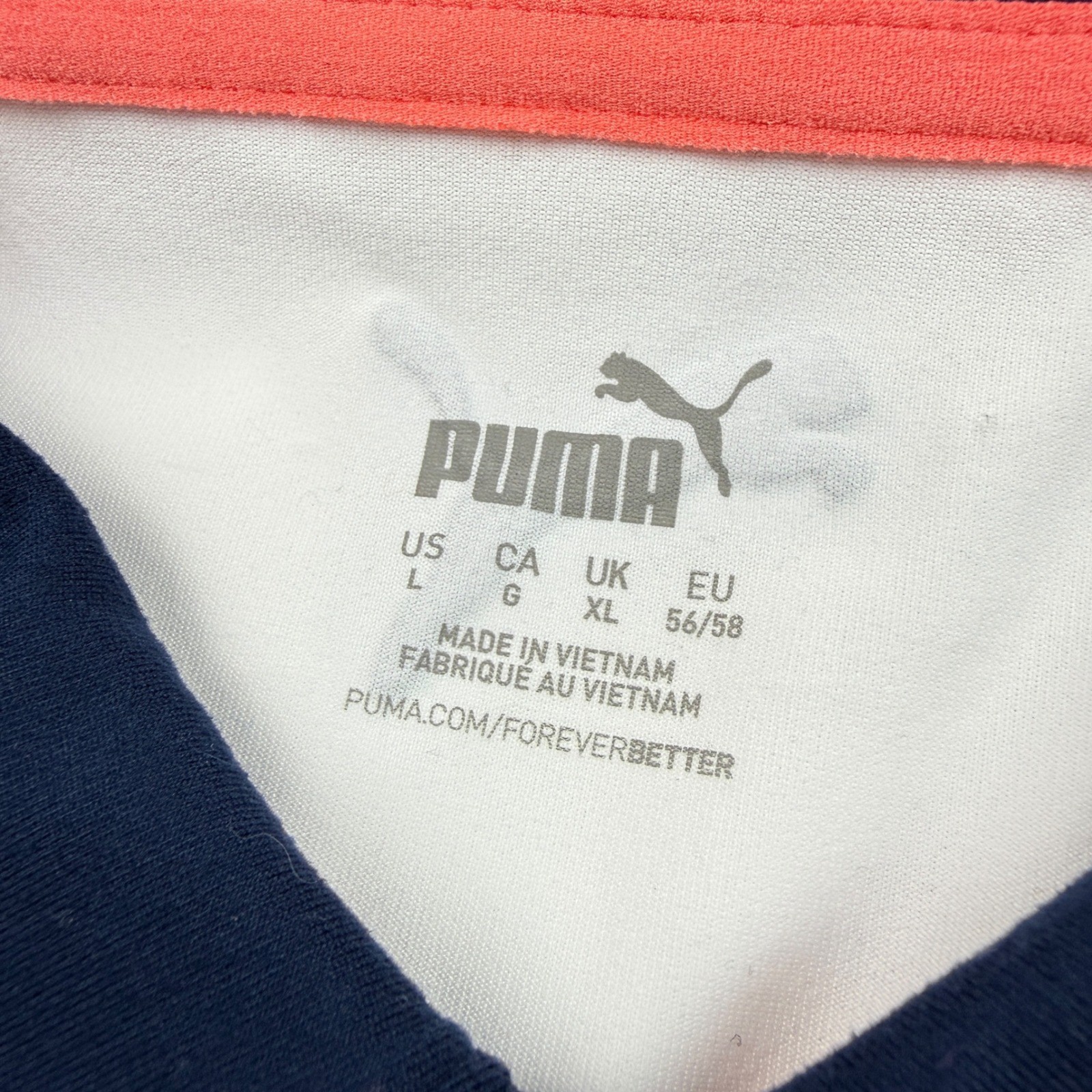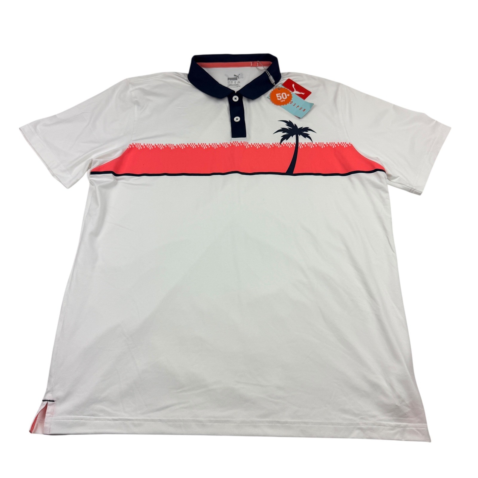 Puma Cloudspun Mens Golf Polo Shirt Large White Navy Coral Palm Tree UPF 50 NWT