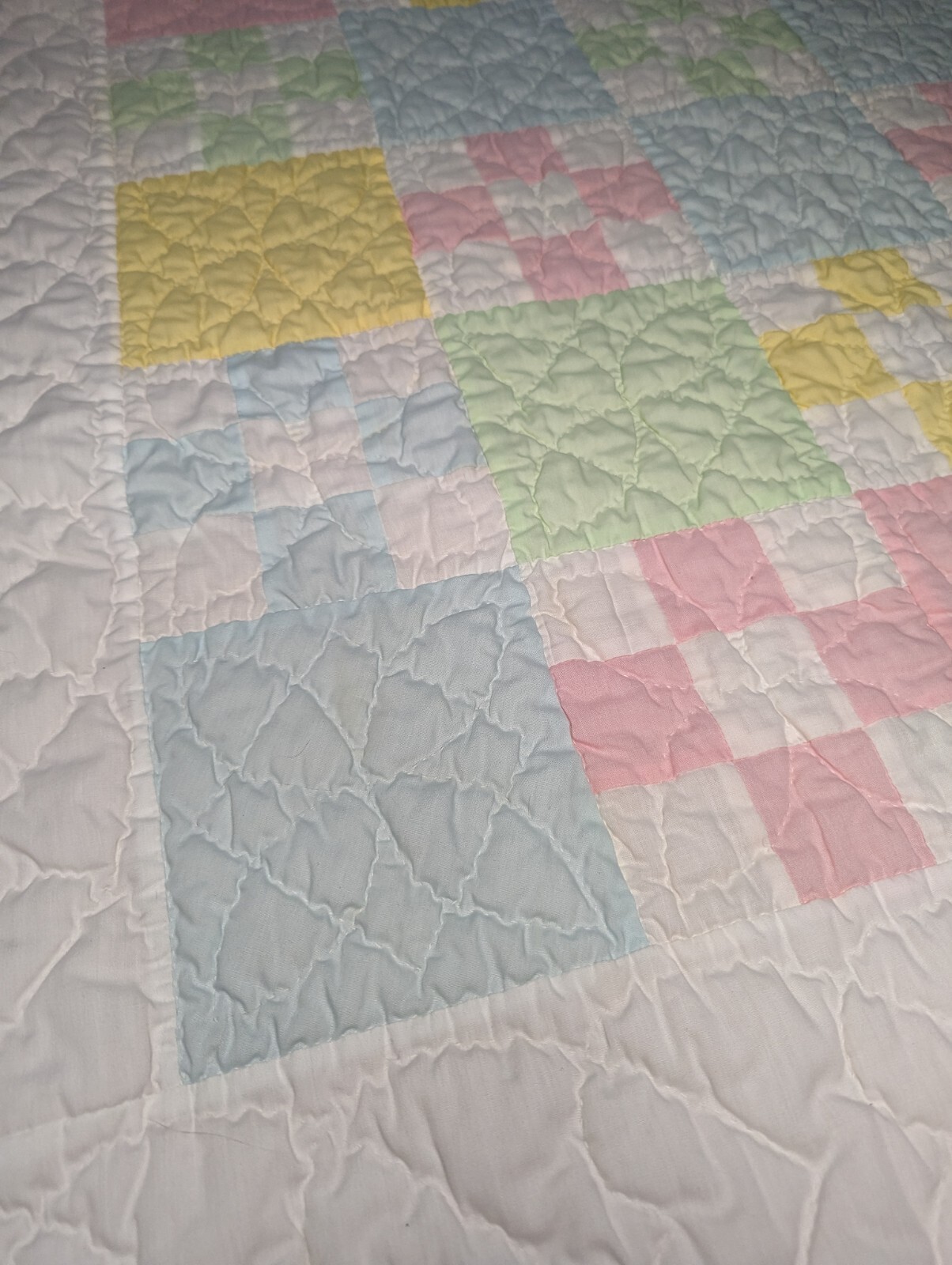 • Vintage Hand Stitched Baby Crib Quilt Color Block Bears Gender Neutral 37x61