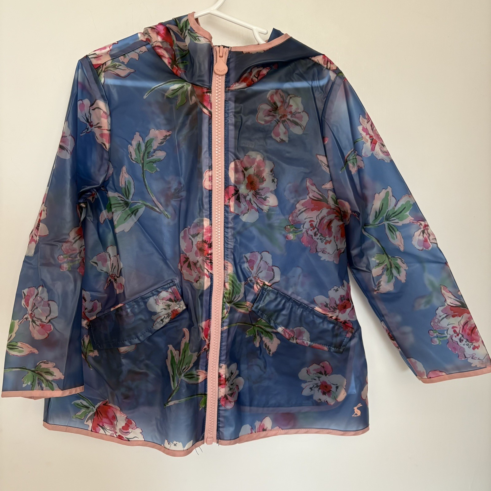 Joules Right As Rain Kids Floral Waterproof Hooded Rain Coat Size 5Y