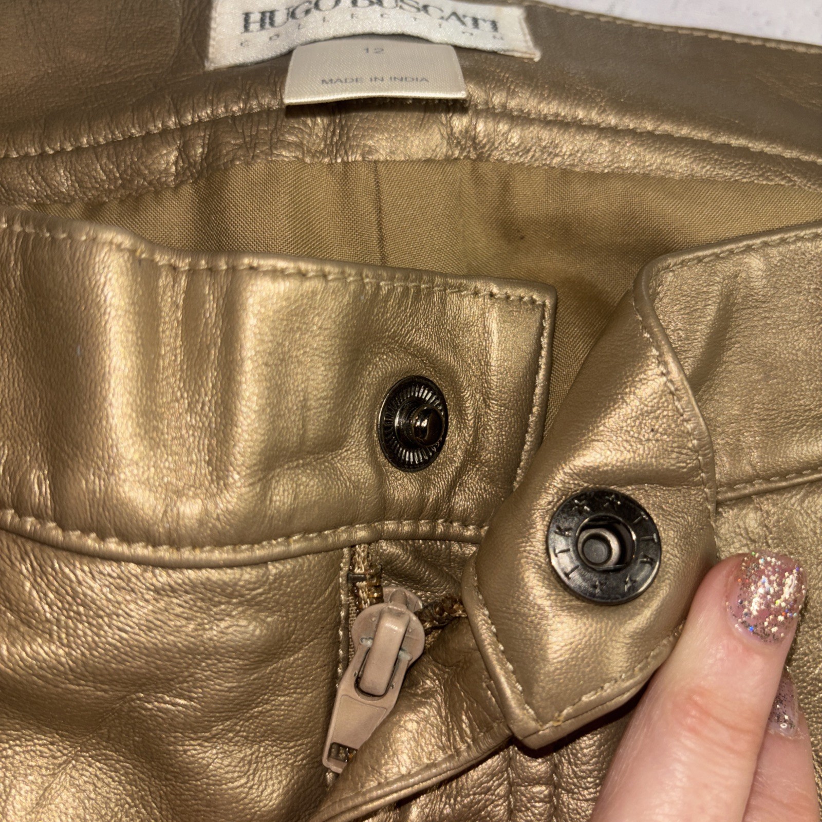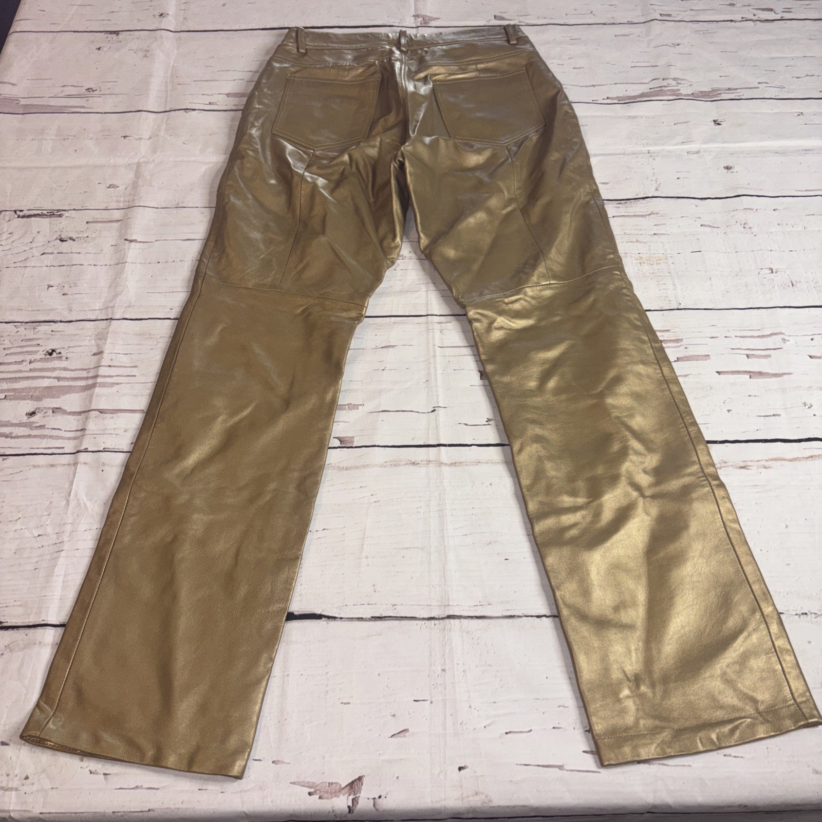 как выглядит Hugo Buscati Gold Leather Pants Lined Women Size 12 A5 фото