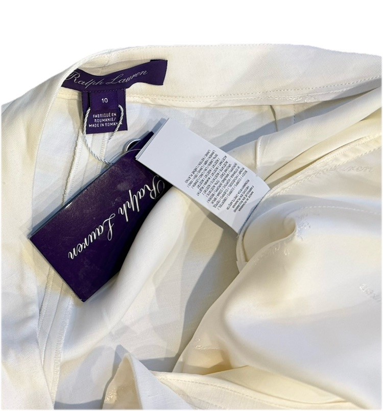 Ralph Lauren Purple Label Spring Antique White Linen Pants Wide Leg Size 10 NWT