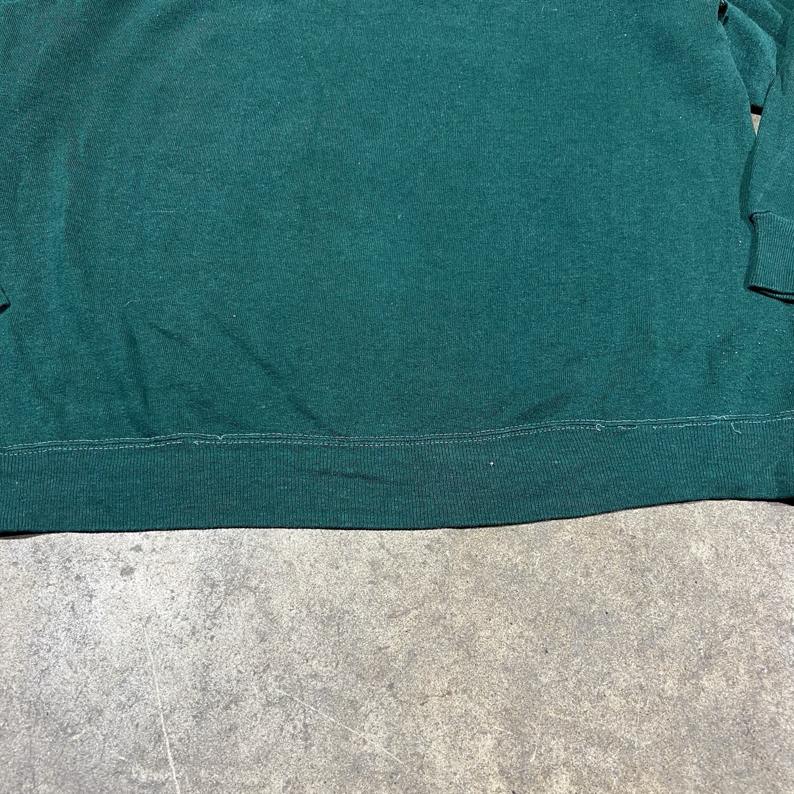 Vtg 70s Blank Sweatshirt Green Adult Medium Raglan Sleeves Distressed Solid