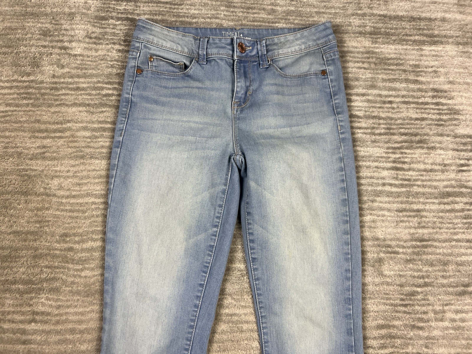 Time and Tru Jeans Womens 4 Blue Mid Rise Skinny Raw Hem Cotton Blend