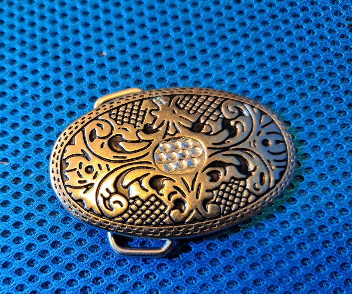 Western Antique Floral Engraved Crystal Belt Buckle Fits 1-1/2 lADIES