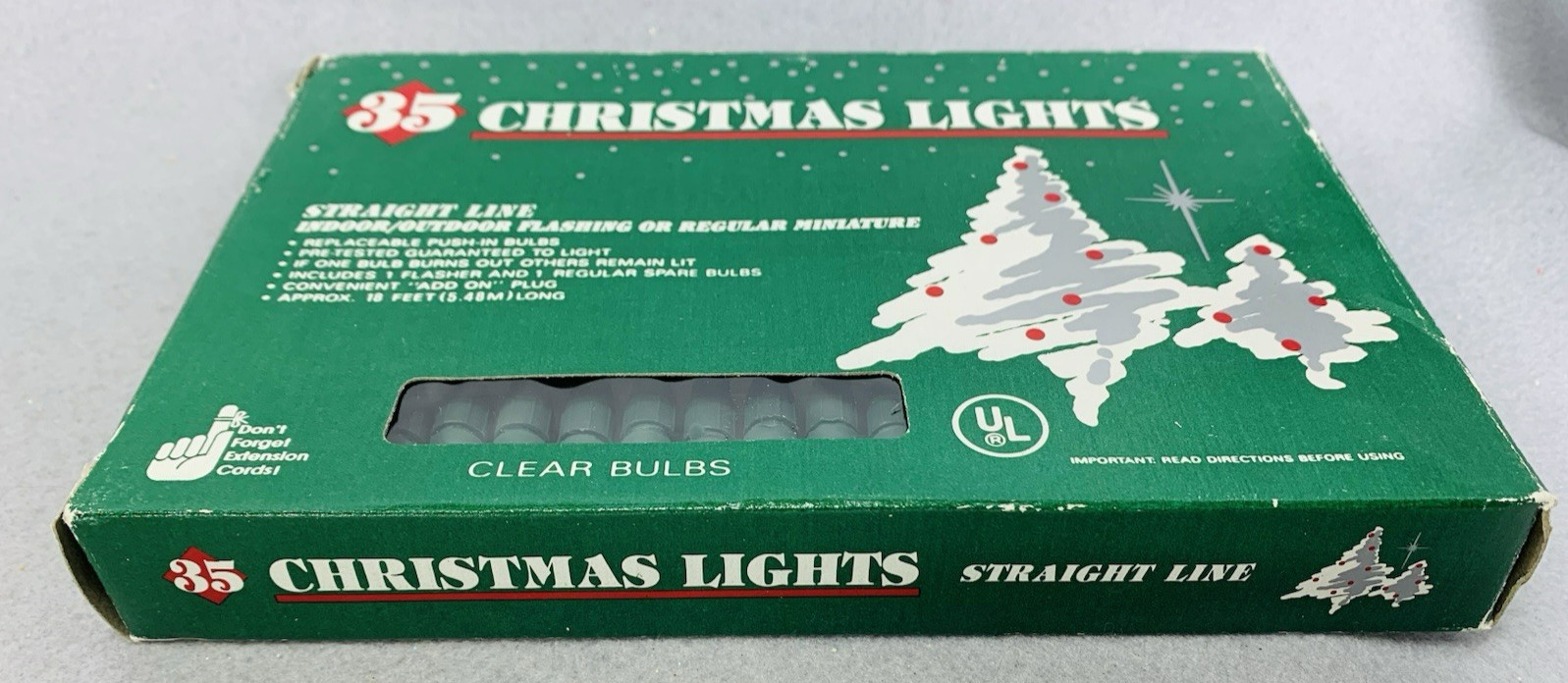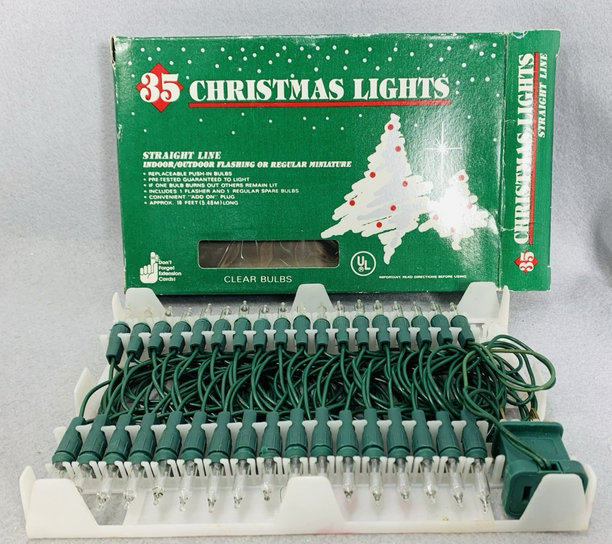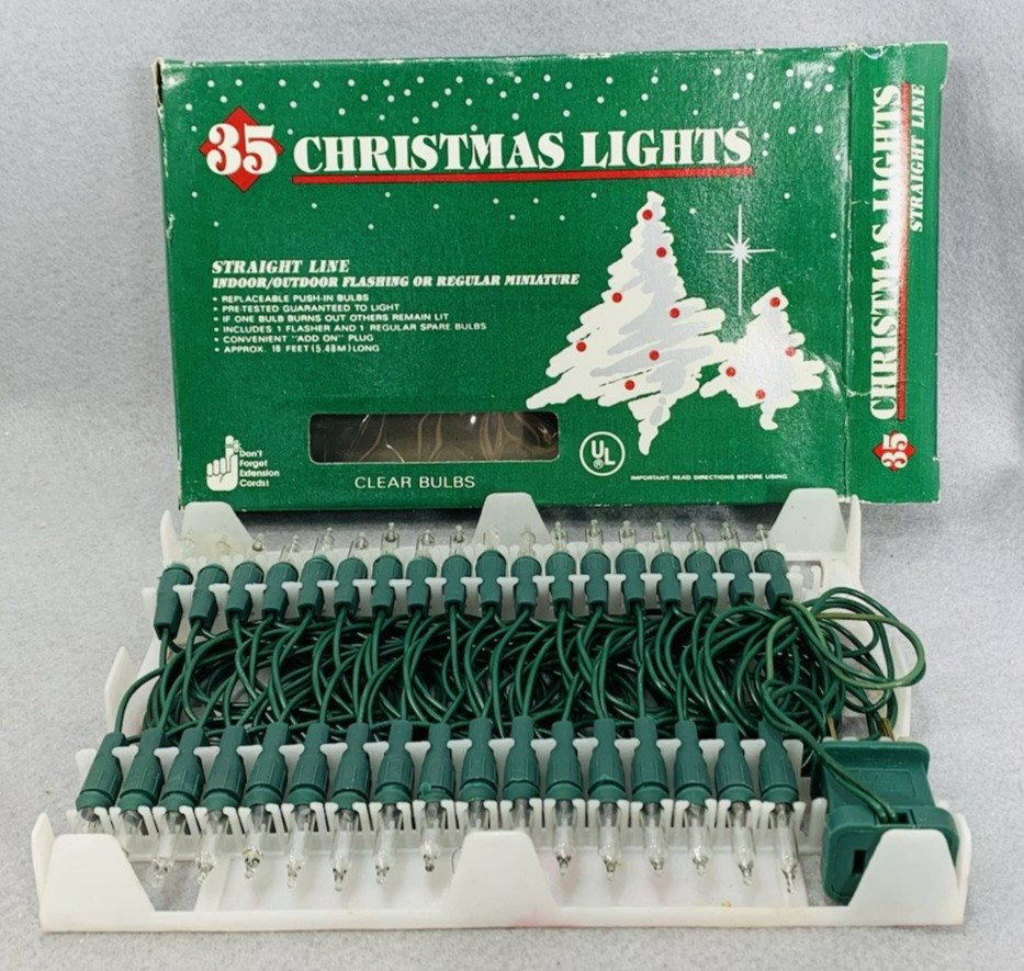 • Vintage Clear Mini Lights String 35 Count Green Wire Christmas 18'