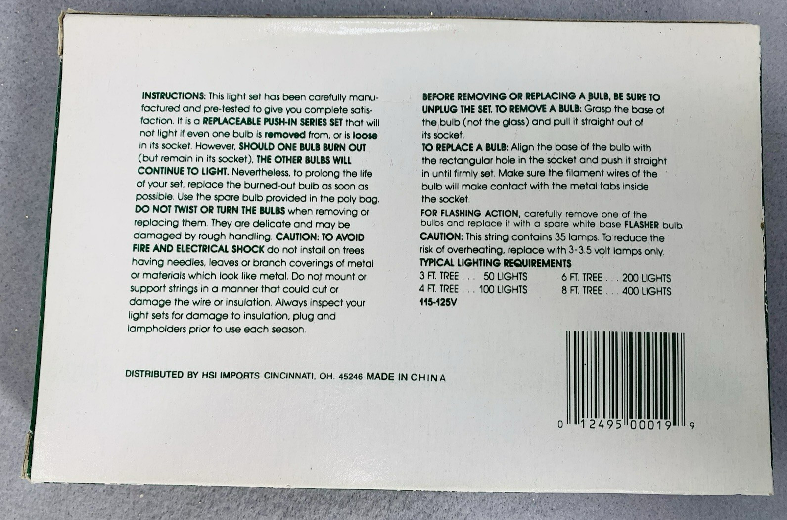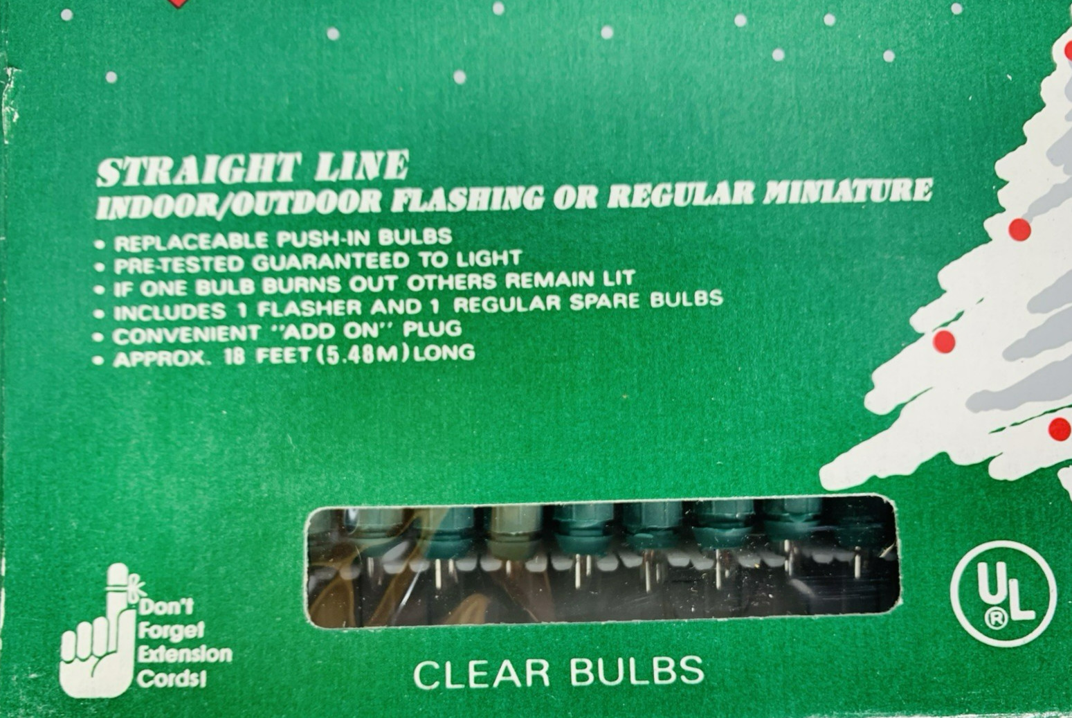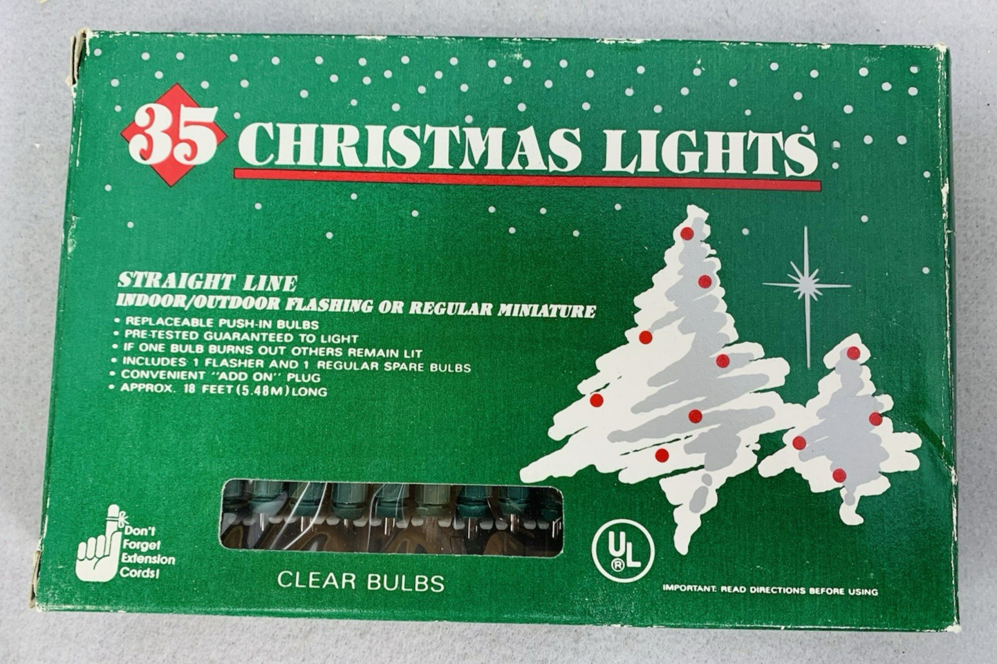 • Vintage Clear Mini Lights String 35 Count Green Wire Christmas 18'