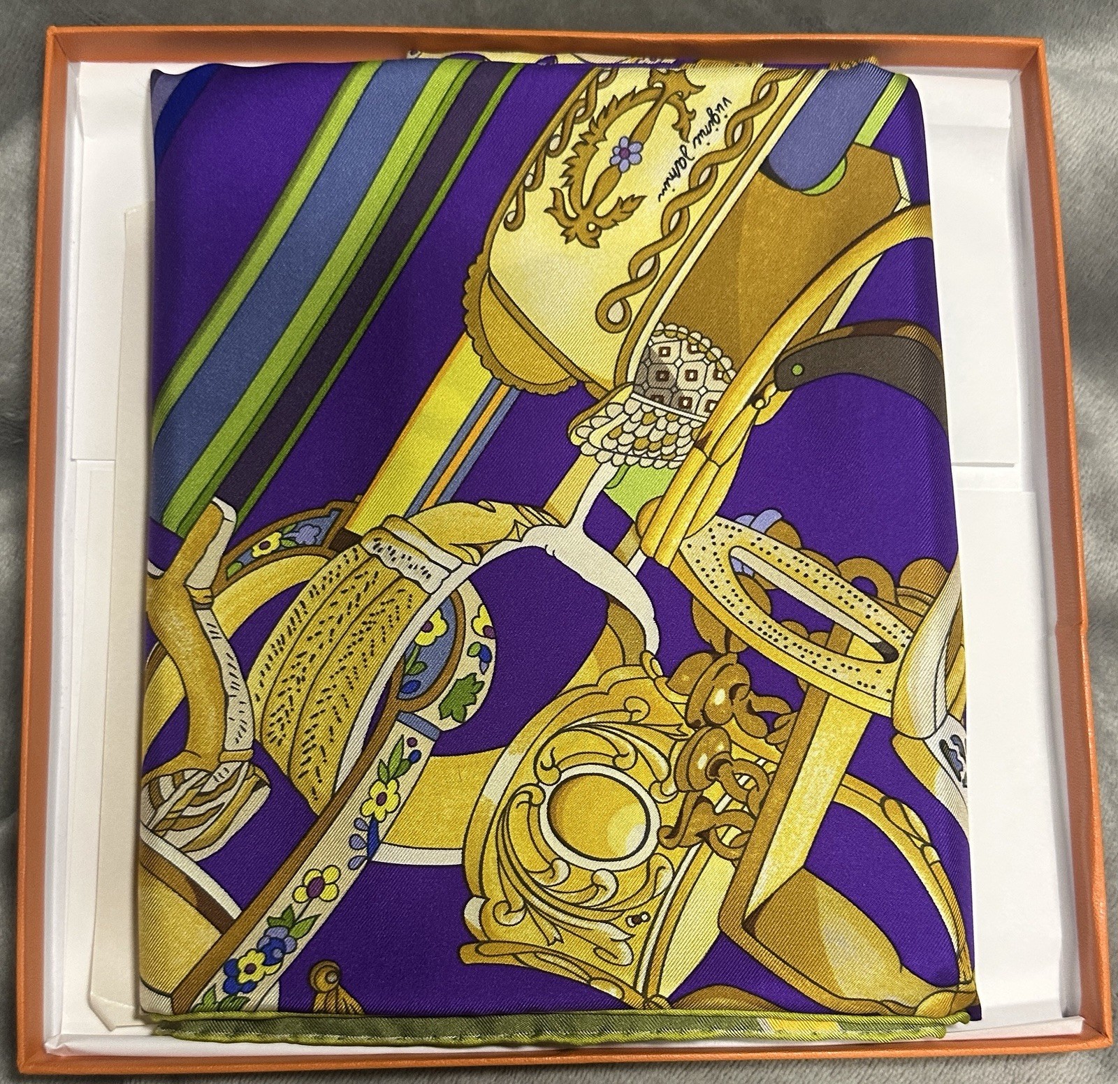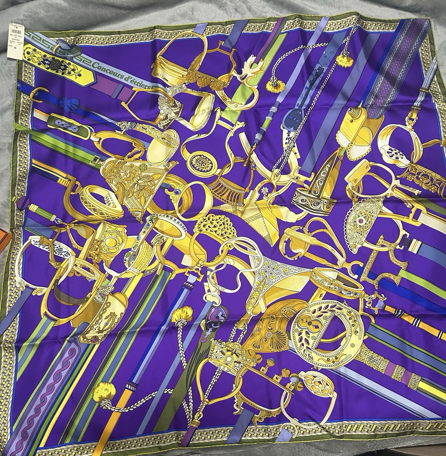 как выглядит The Hermes Carre 90 Concours DEtriers Silk Scarf in Purple. New W/Box Tag фото